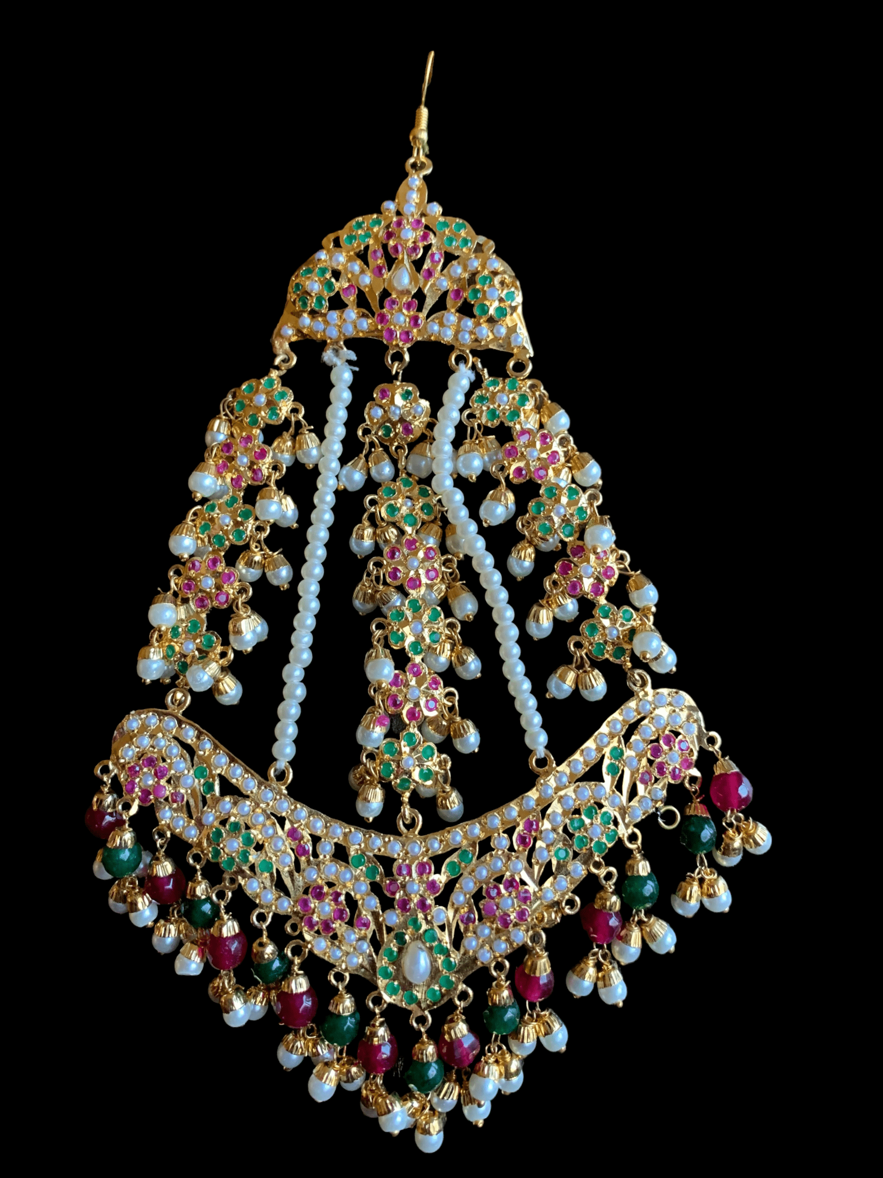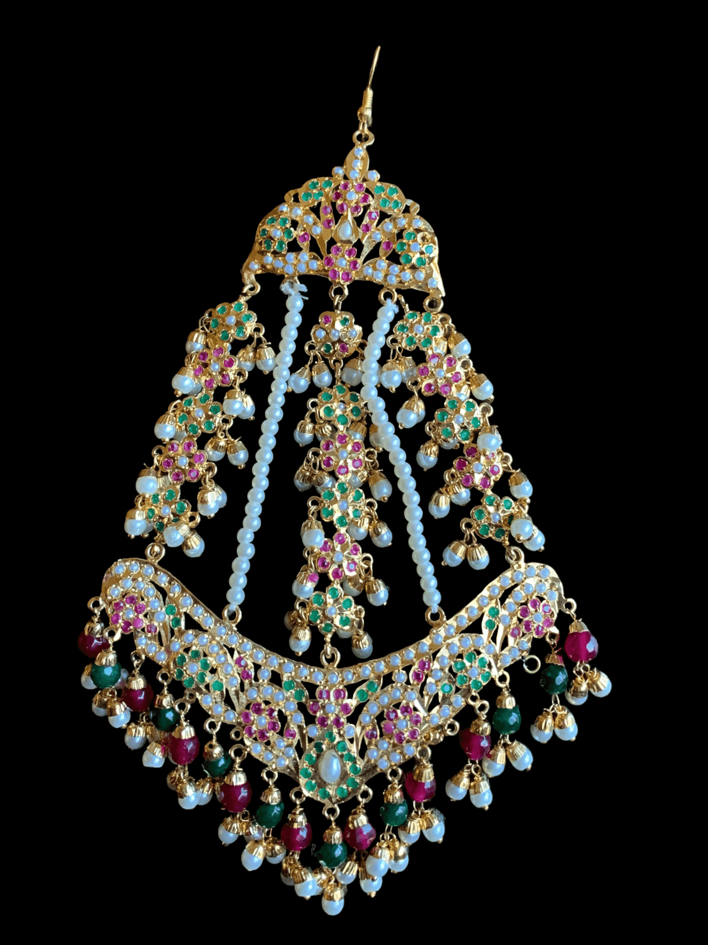 DJHR42 Punjabi jadau jhoomar in ruby emerald ( READY TO SHIP)