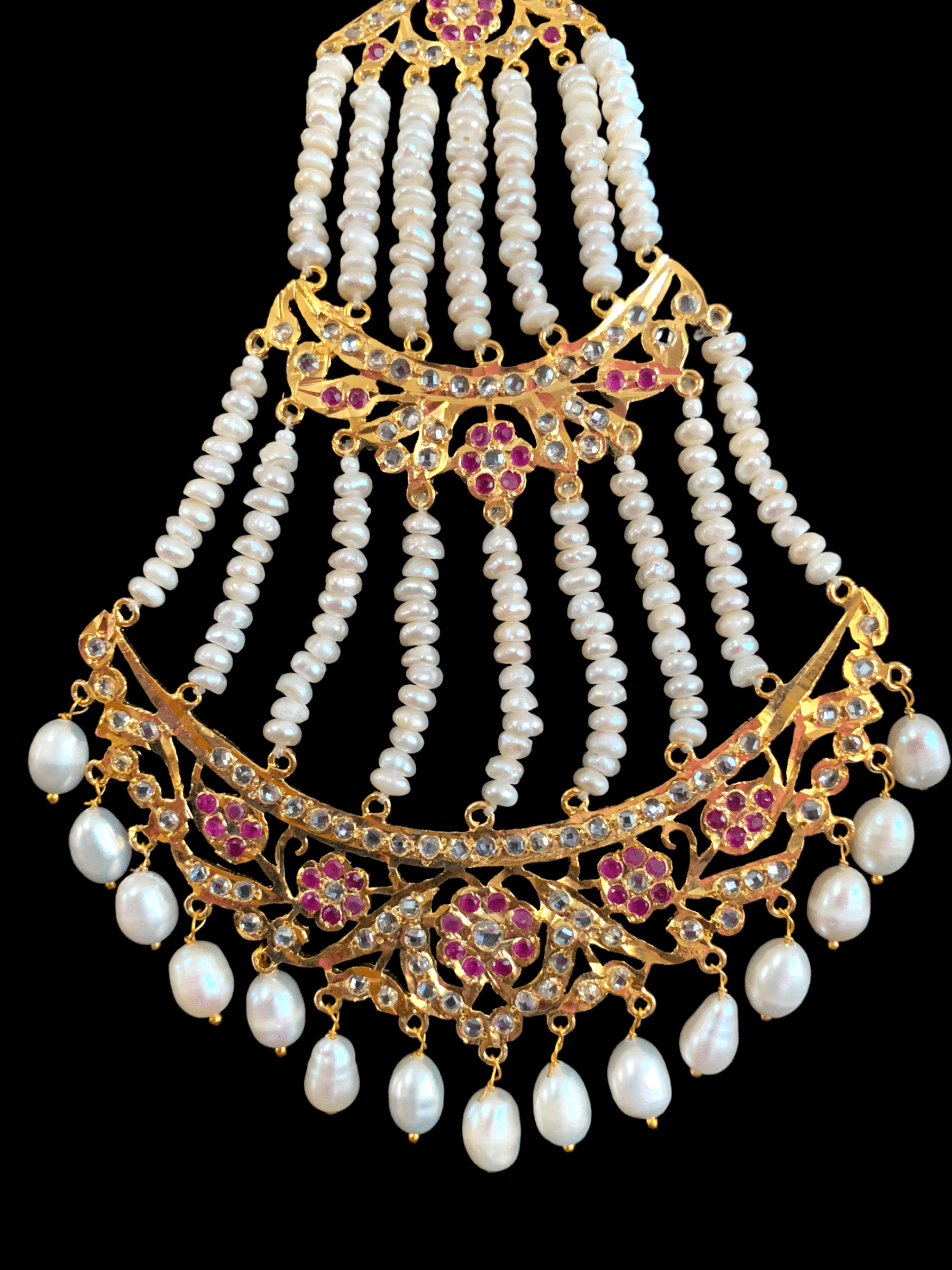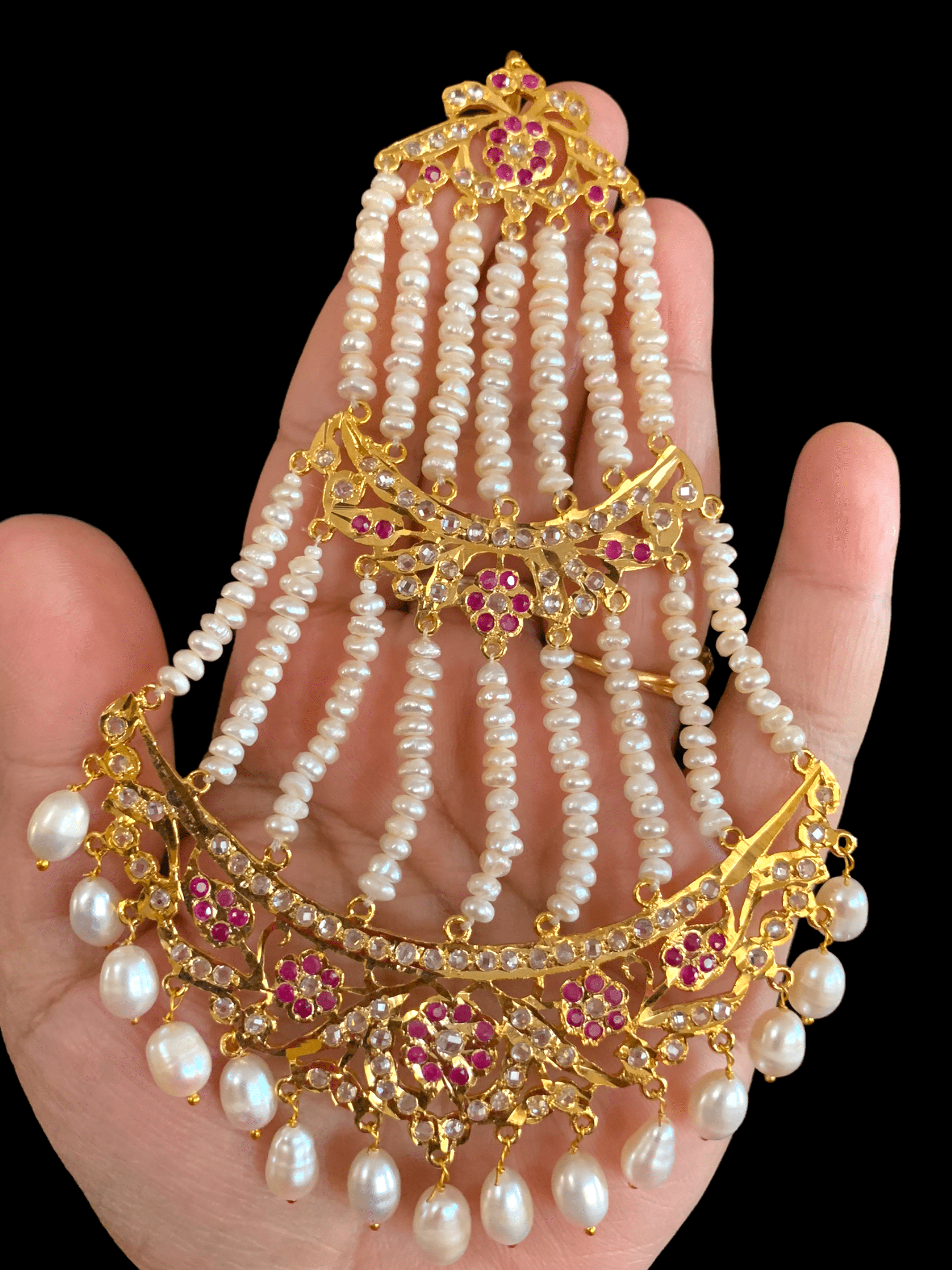 DJHR54 Insia jhoomar in fresh water pearls and rubies ( READY TO SHIP )