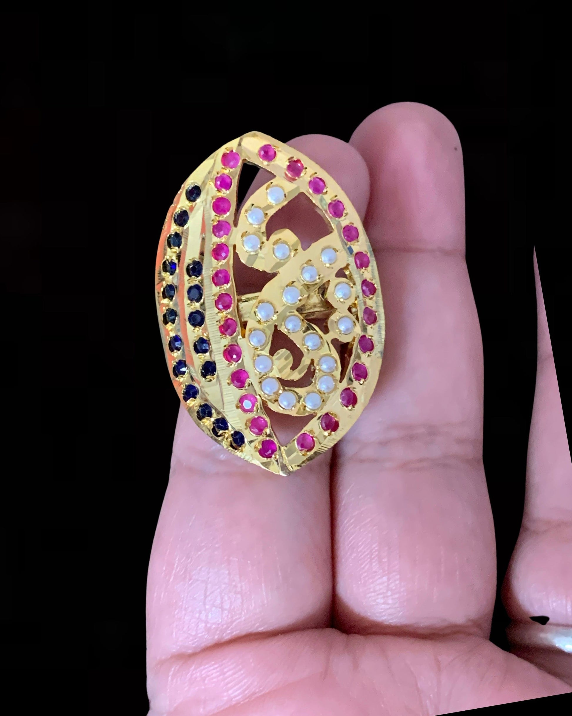 DJR27 Koyal Jadau ring -Ruby sapphire ( READY TO SHIP)