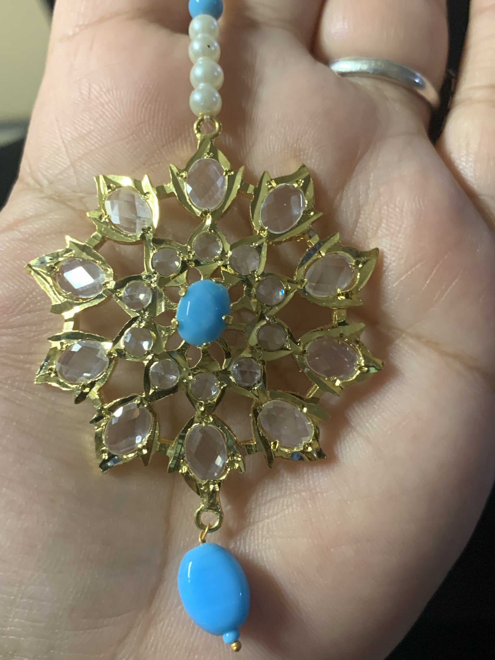 Made using shell pearls , cz stones and 22ct gold plating