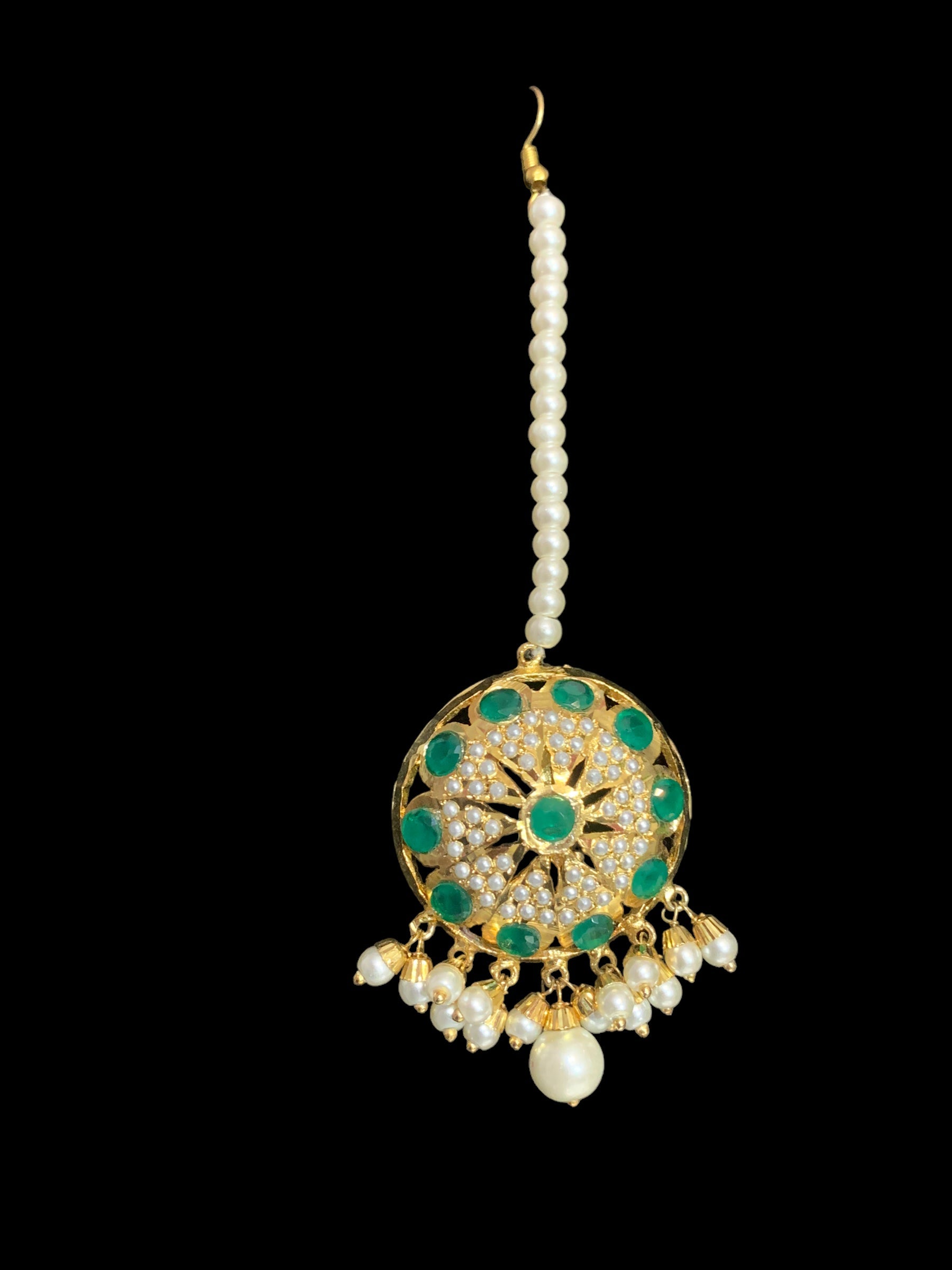 DJTK96 jadau emerald tika in pearls ( READY TO SHIP)