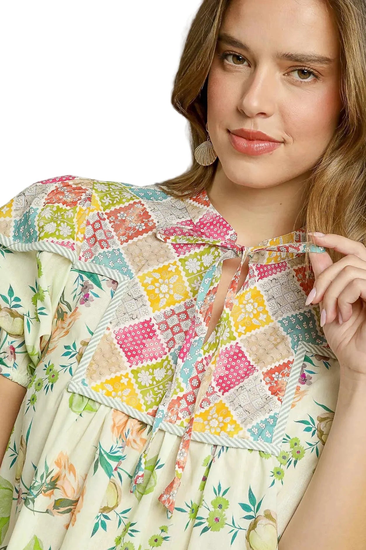 Step into a world of romance with the Floral Print Tie Neck Puff Sleeve Dress. Adorned with delicate blossoms, this enchanting piece whispers elegance and charm. The tie neck detail invites a playful touch, while the puff sleeves evoke a sense of timeless beauty.