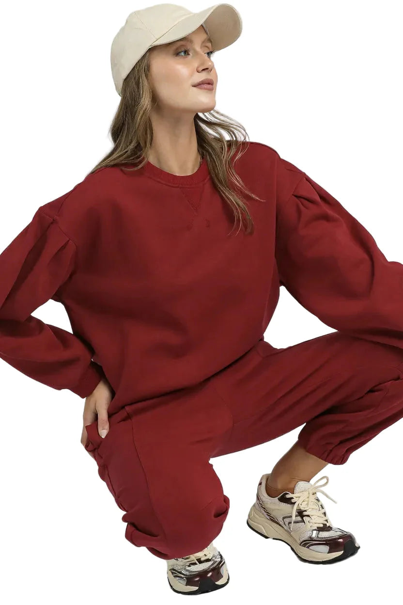 Round Neck Sweatshirt with Pleated Detail