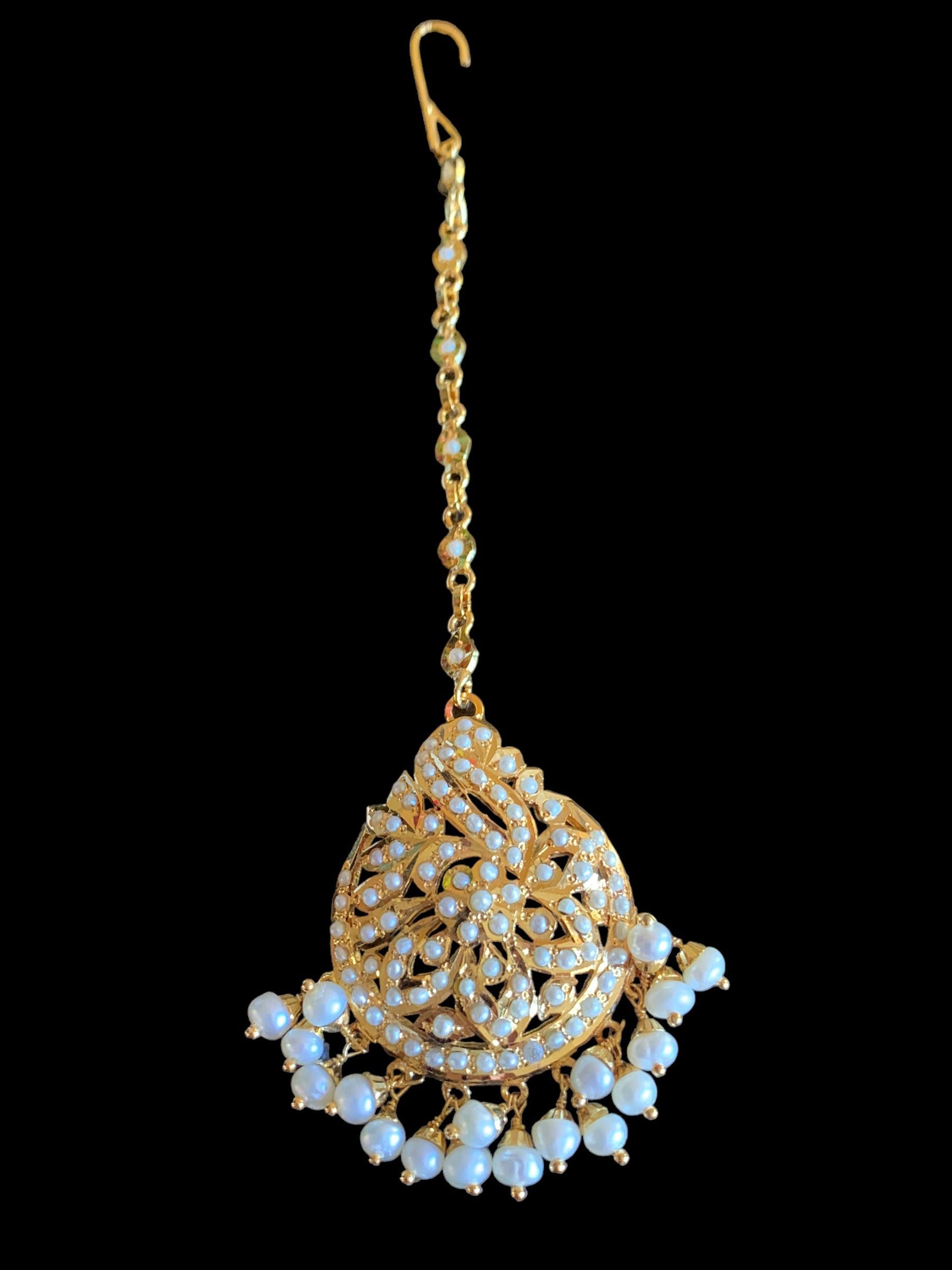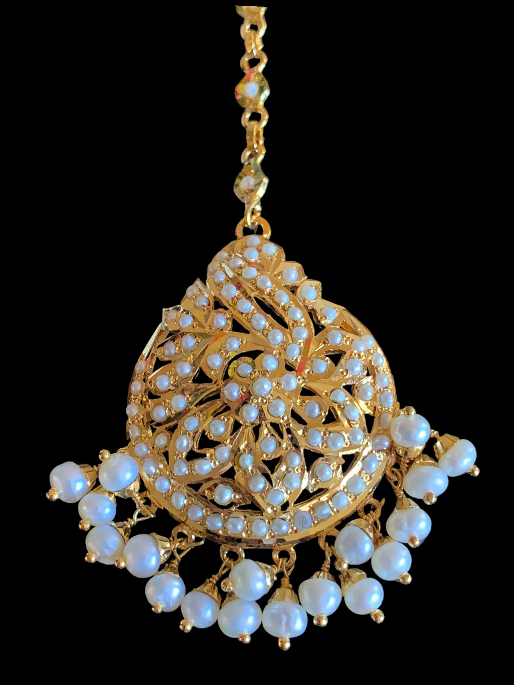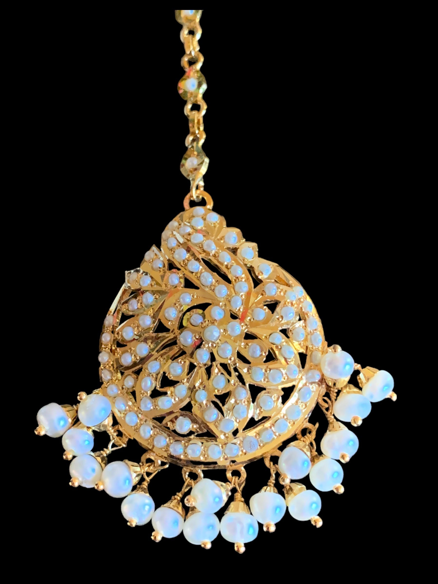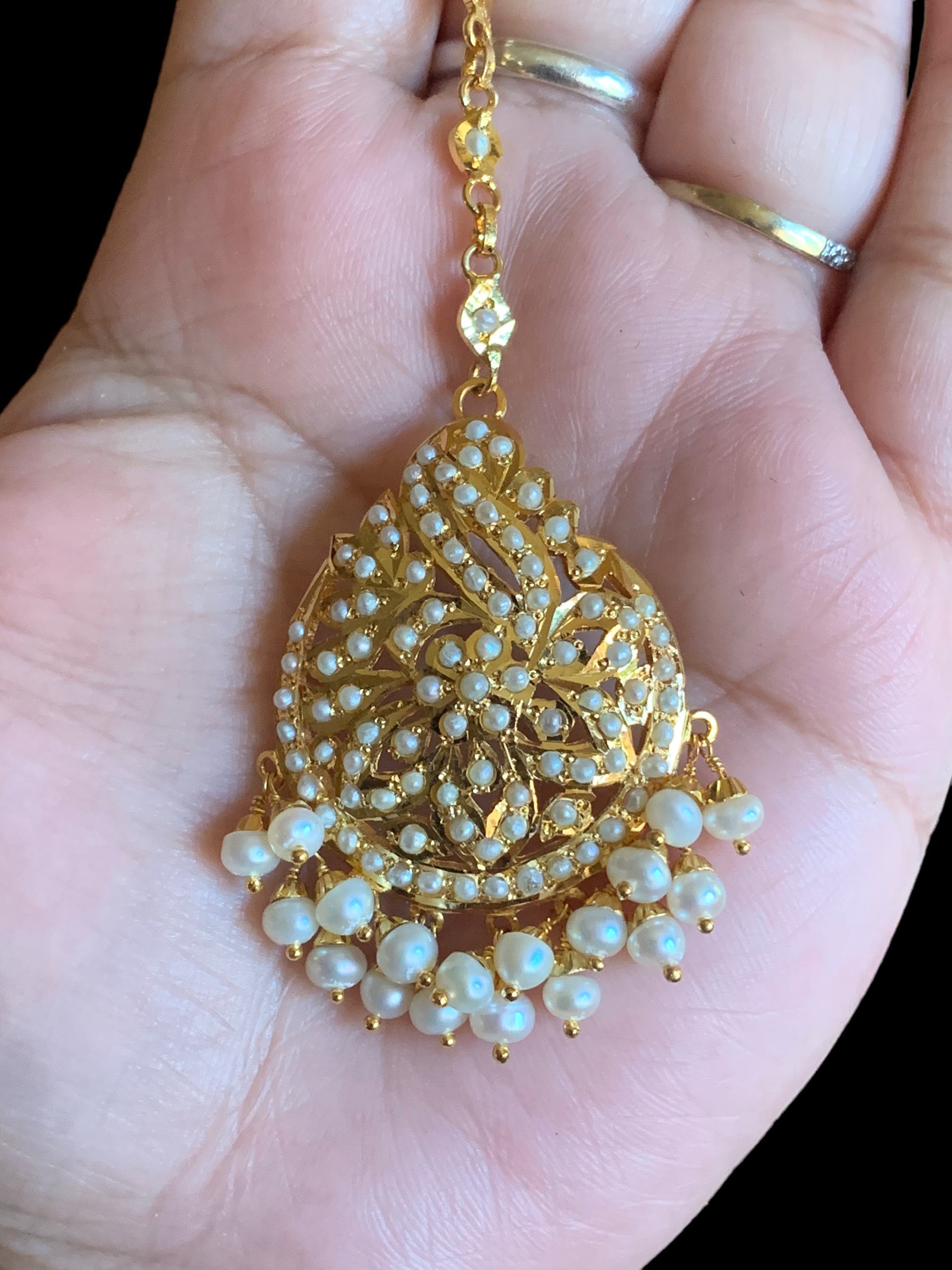 Gold plated silver tikka in fresh water pearls ( SHIPS IN 4 WEEKS )