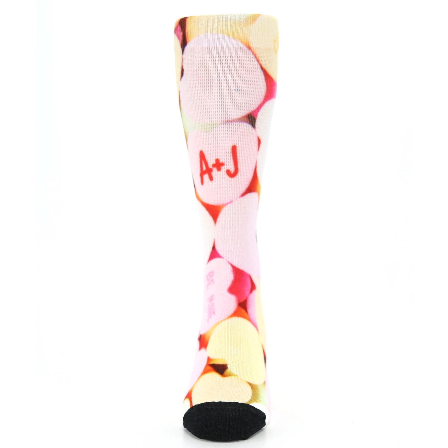 These custom socks are a sweet treat to give your very special someone this Valentine's Day! Fall in love with these fun heart candy custom dress socks and personalize them with a note, names or initials for a super sentimental gift for your sweetheart. Make this Valentine's Day something to remember by adding your own personal touch to these custom made socks for a special Valentine's socks your partner will love.