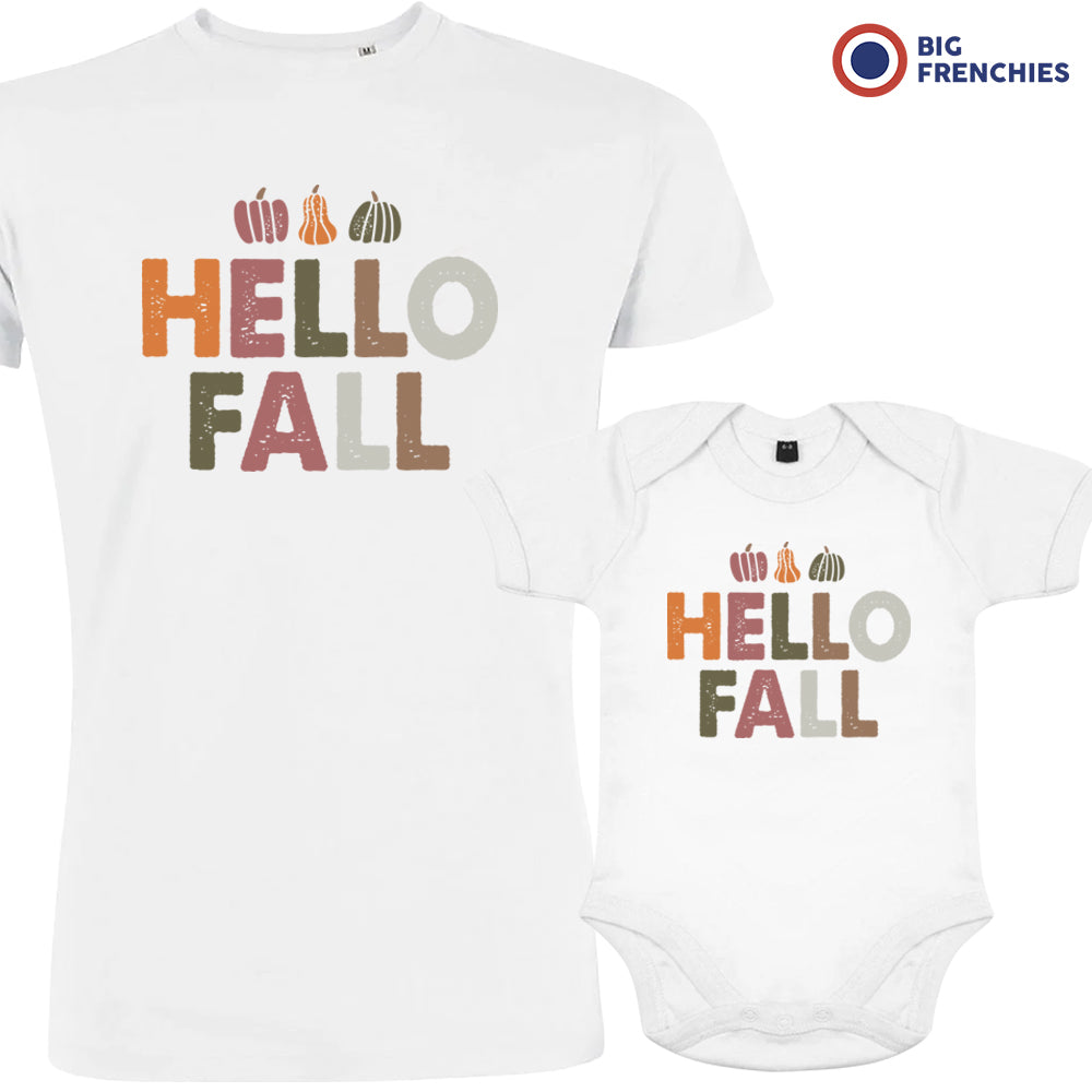 Hello Fall With Pumpkin Dad and Child Organic Cotton family Set (Set of 2)