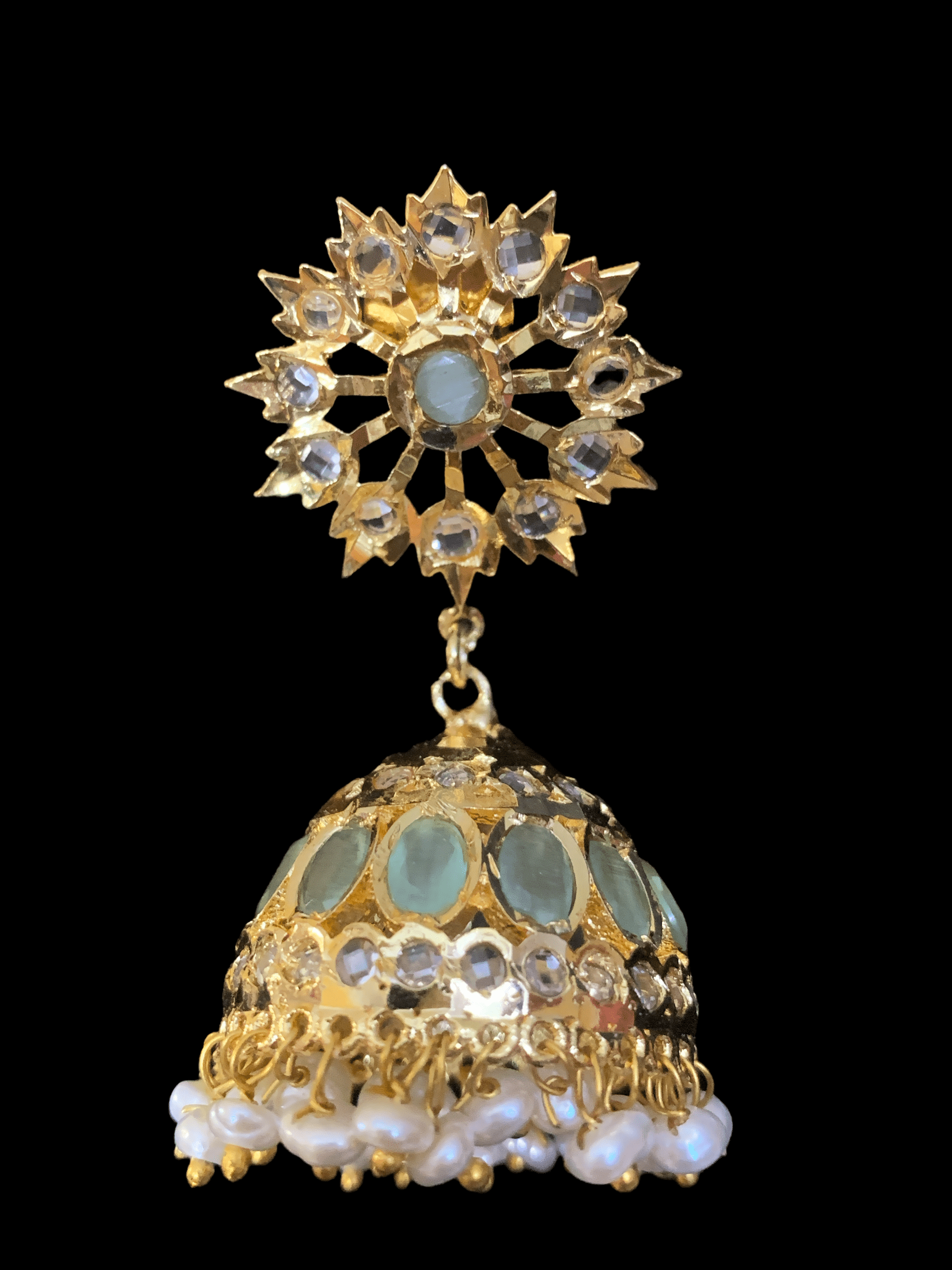Hyderabadi fresh water pearl jhumka - MINT ( READY TO SHIP )