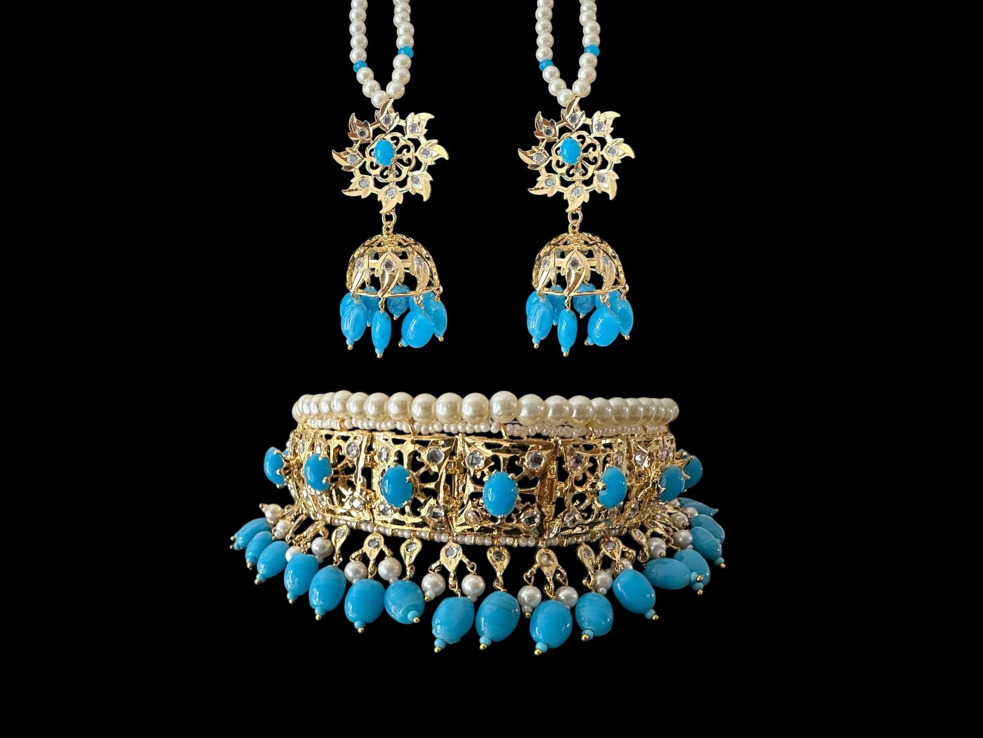 Hyderabadi jadau choker in ferozi / turquoise (SHIPS IN 2 WEEKS )