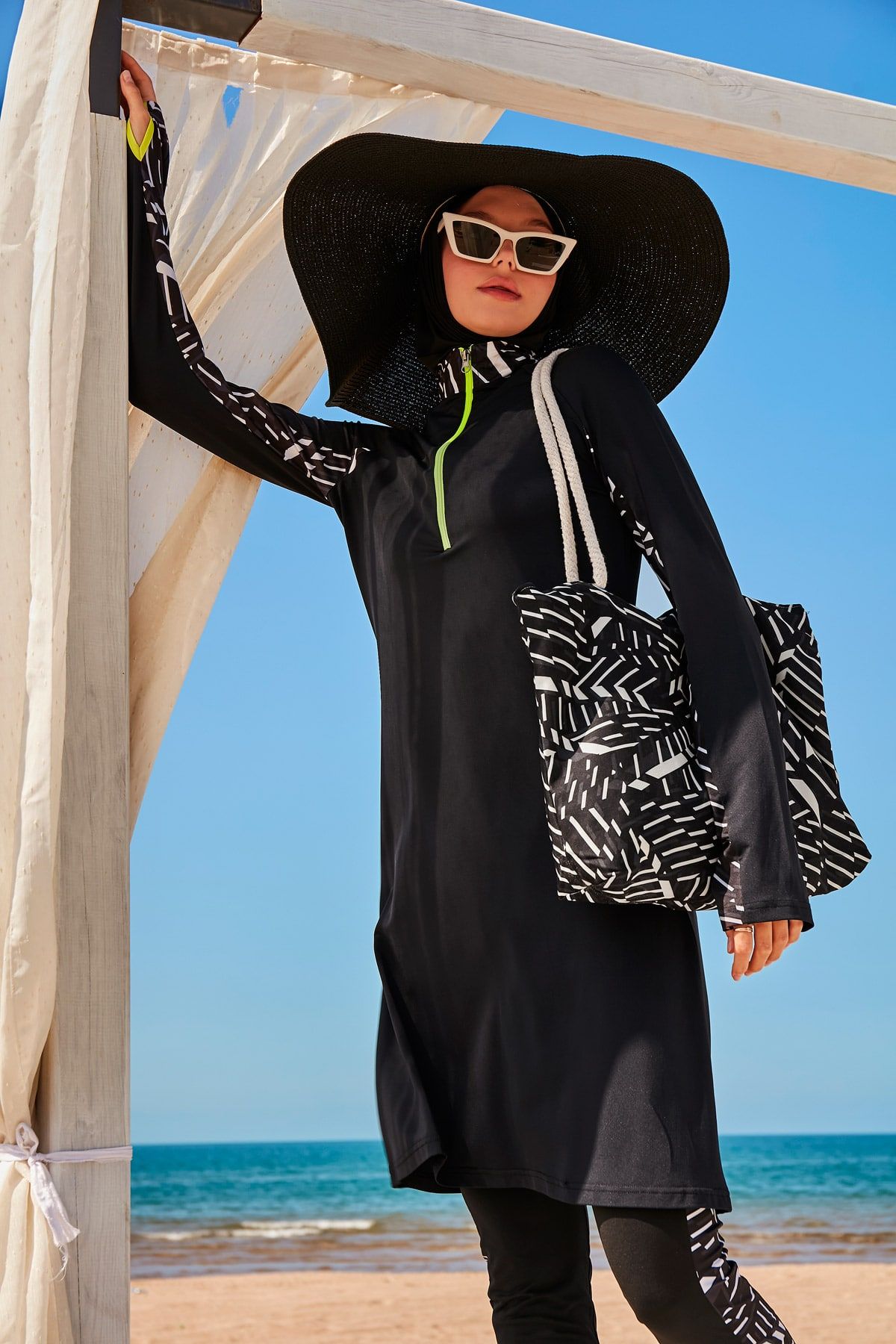 - The tunic and leggings have tie strings. These strings prevent your swimsuit from riding up.