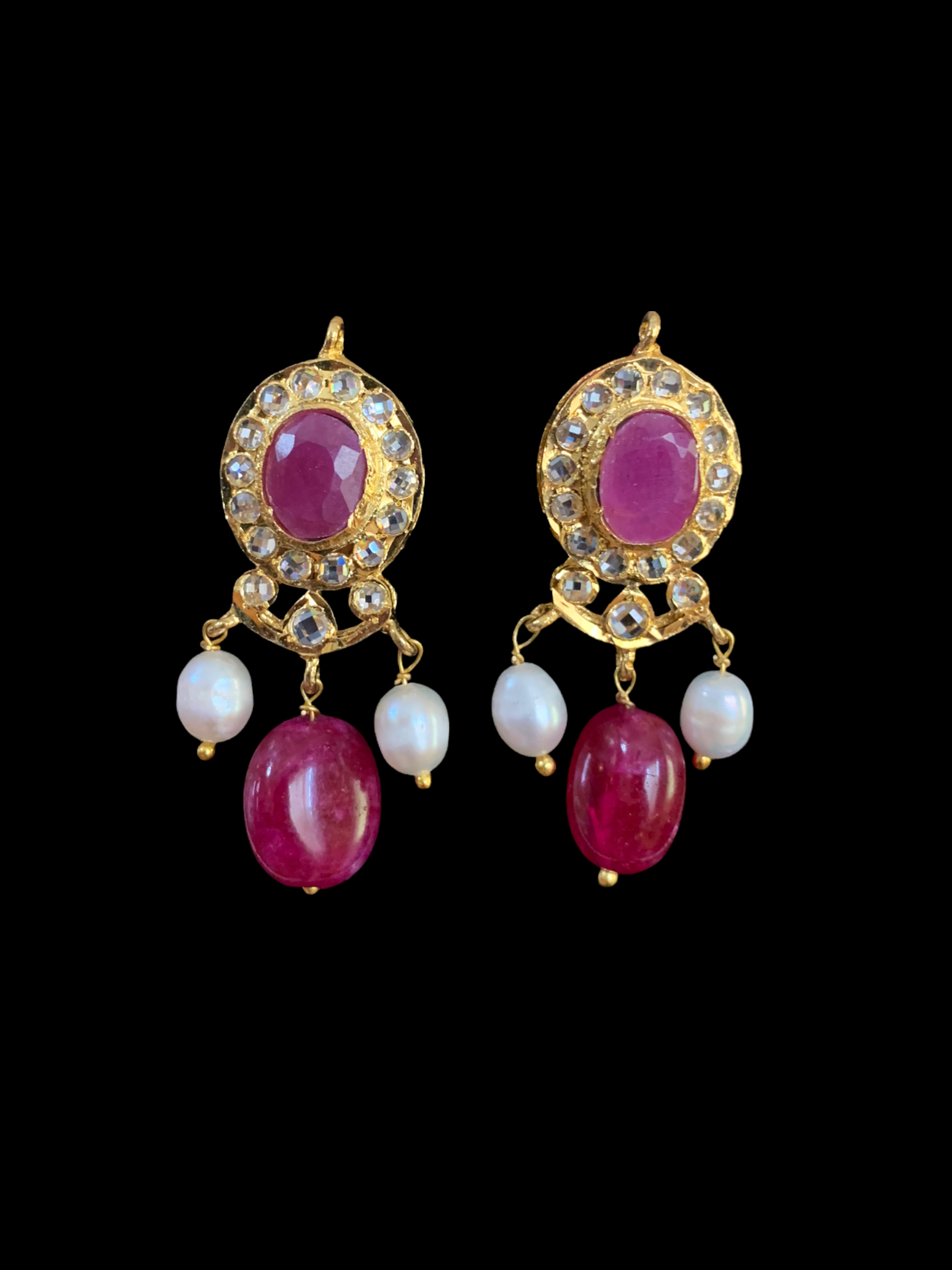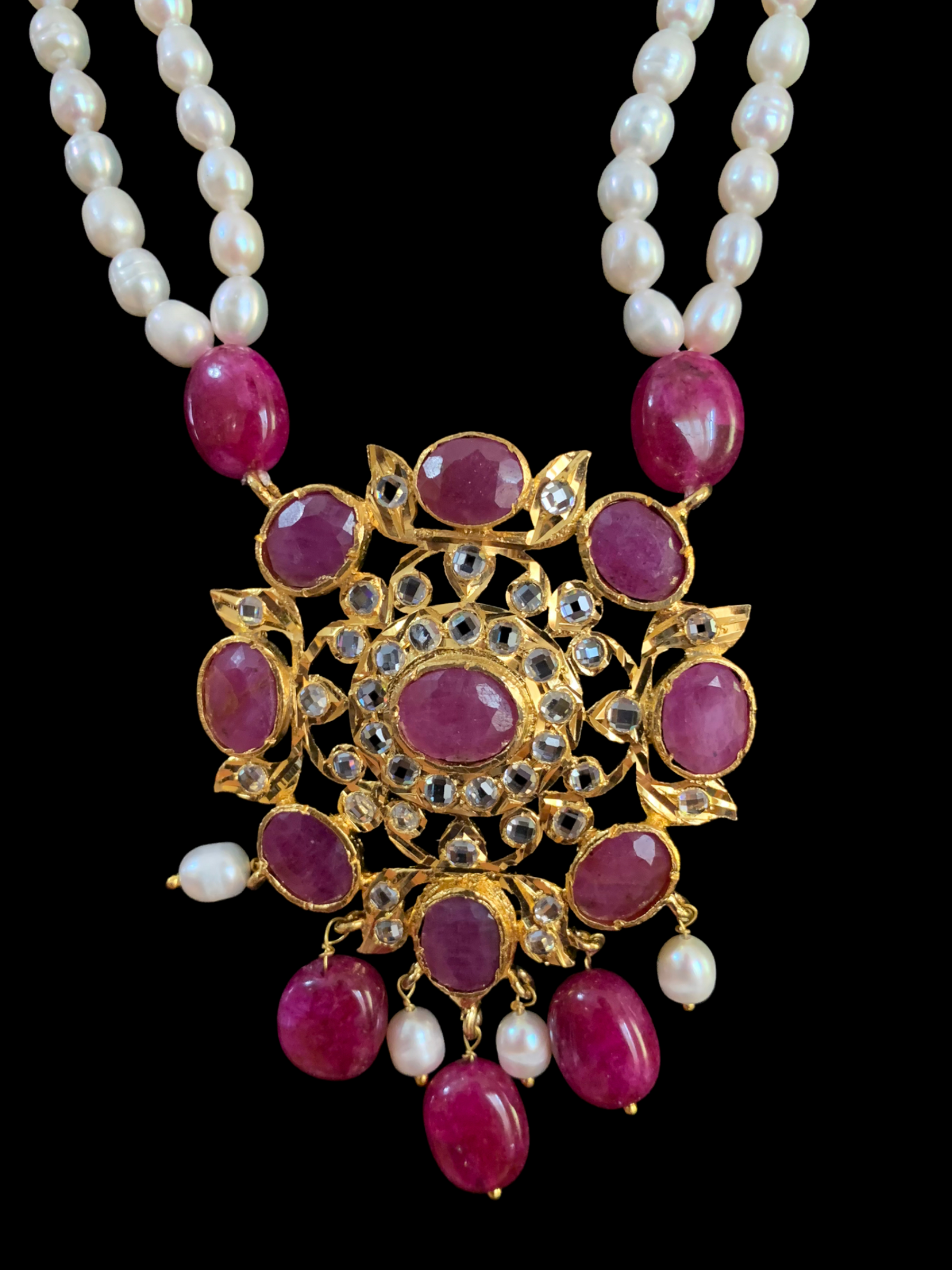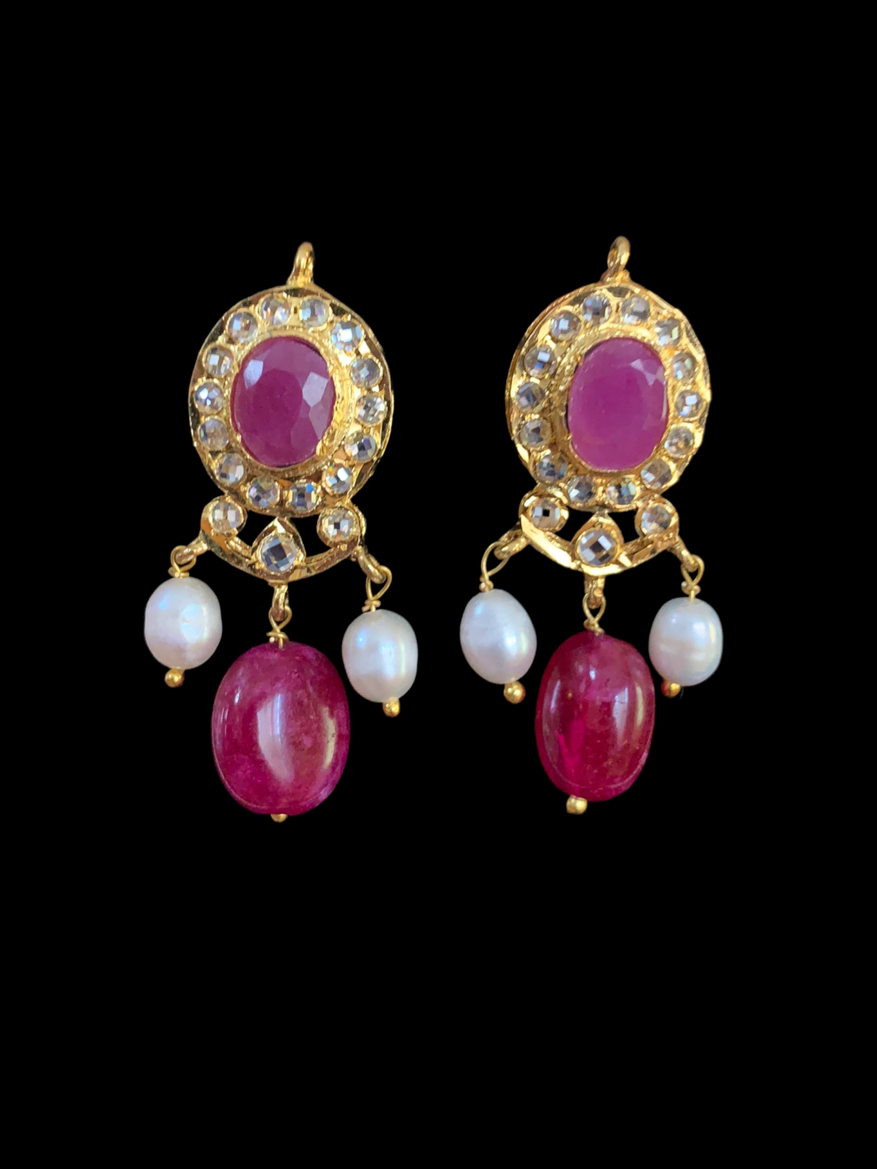 Naurin gold plated silver pendant with earrings in rubies ( READY TO SHIP)
