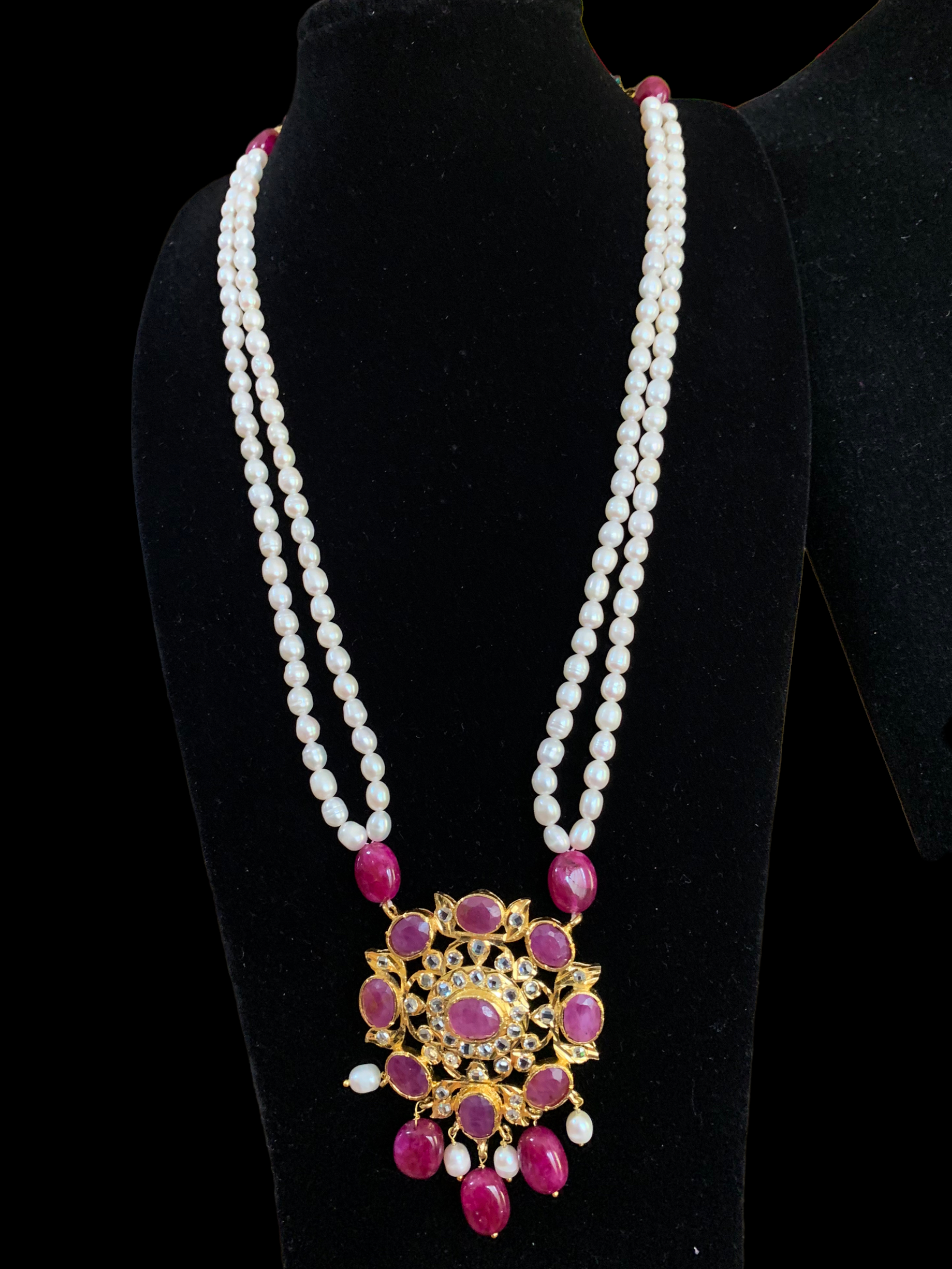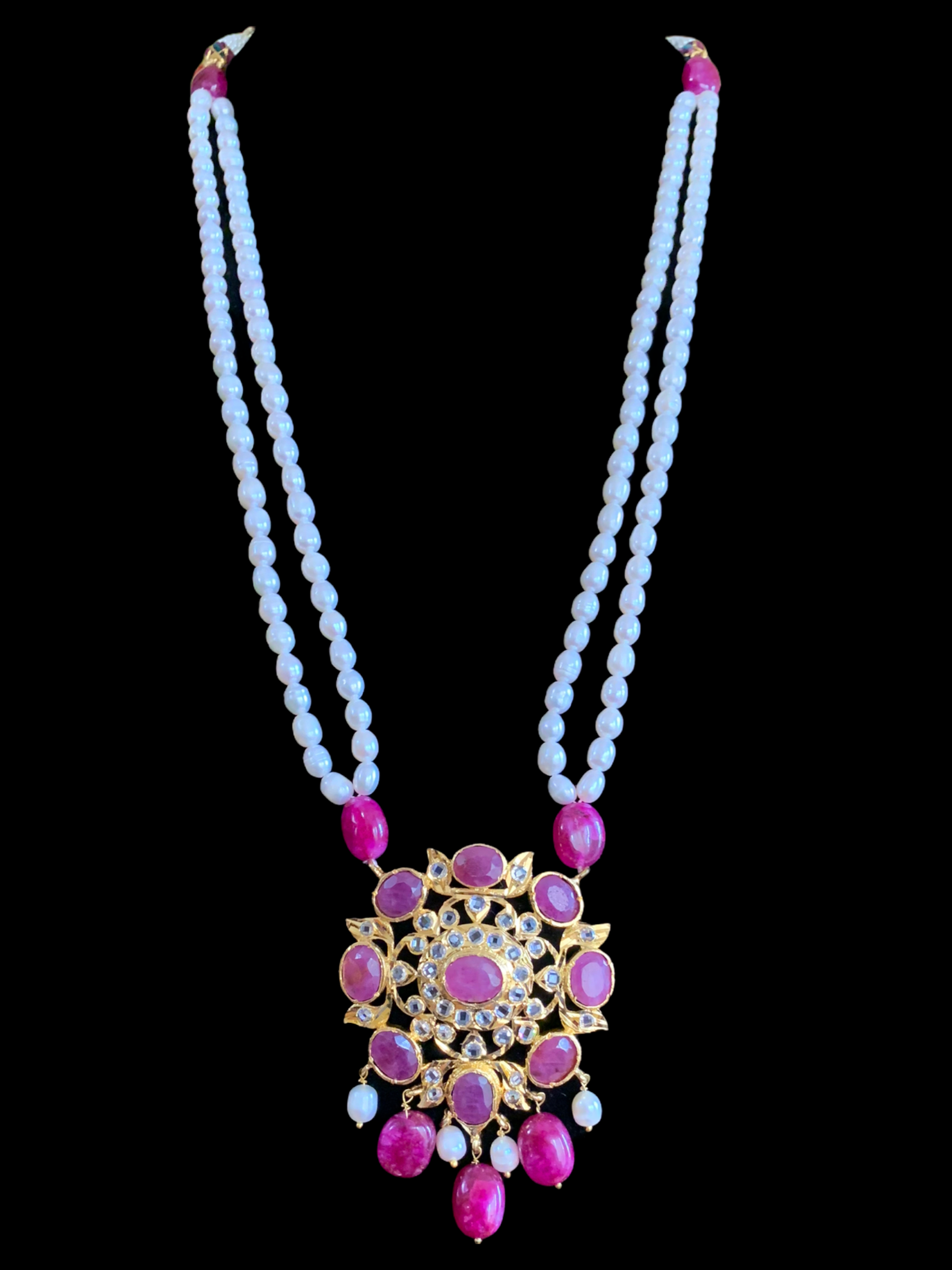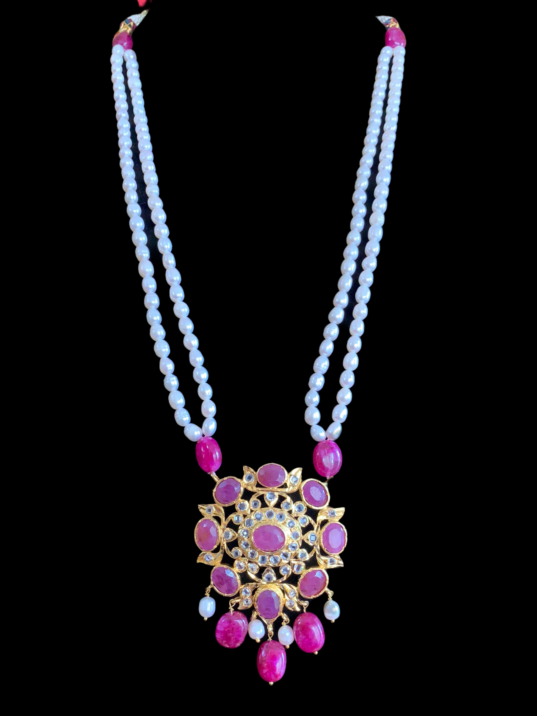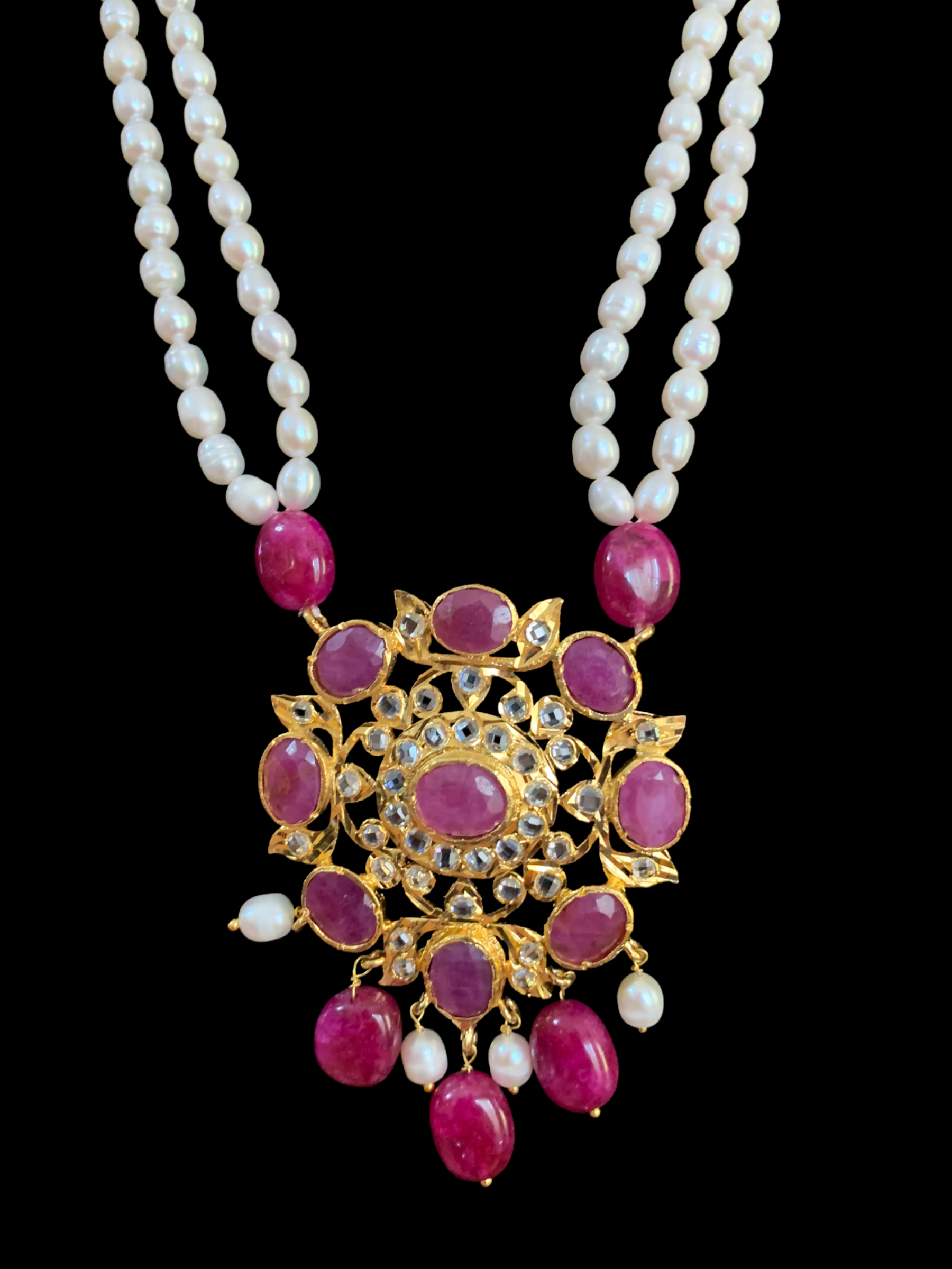 Naurin gold plated silver pendant with earrings in rubies ( READY TO SHIP)