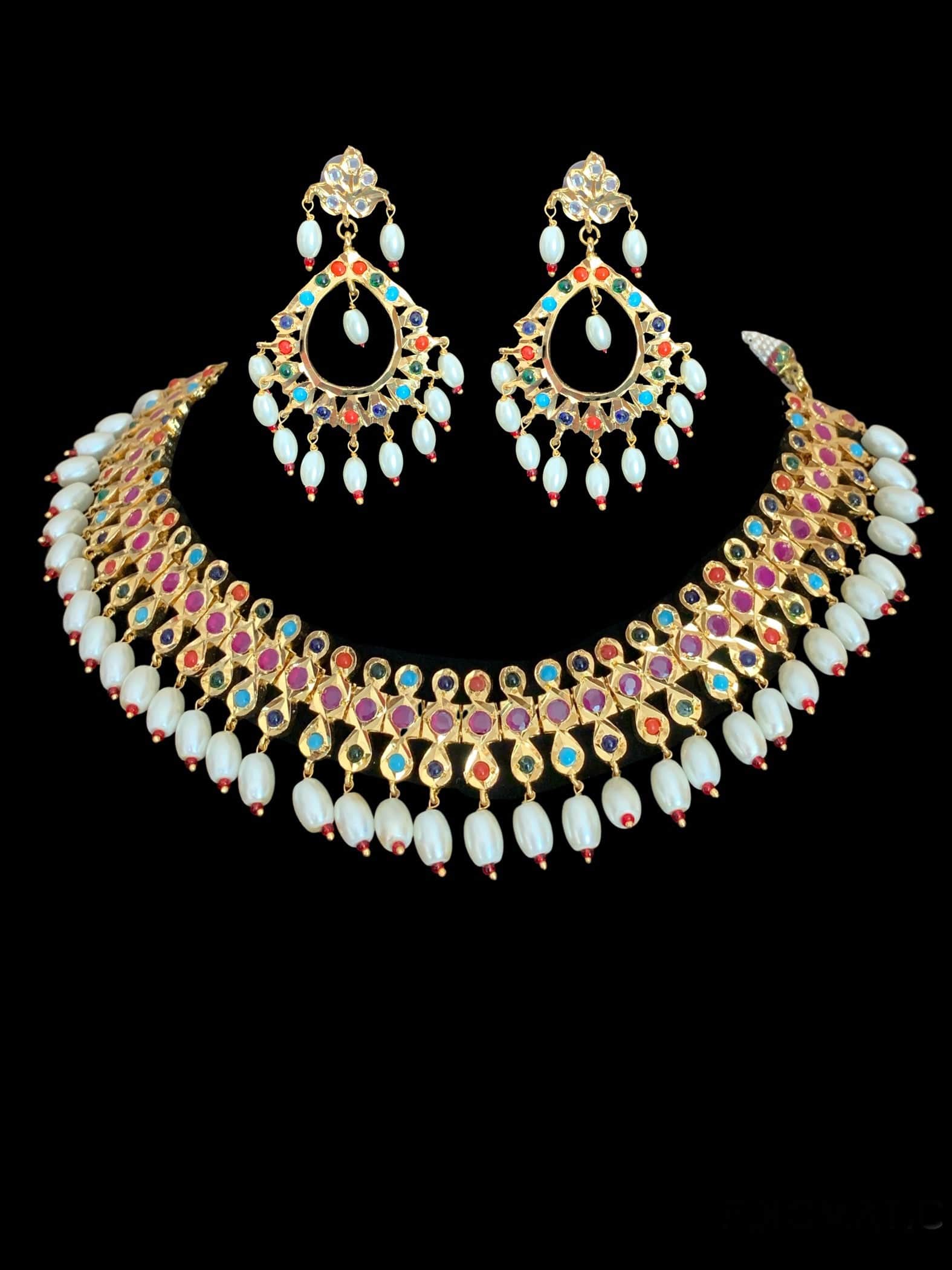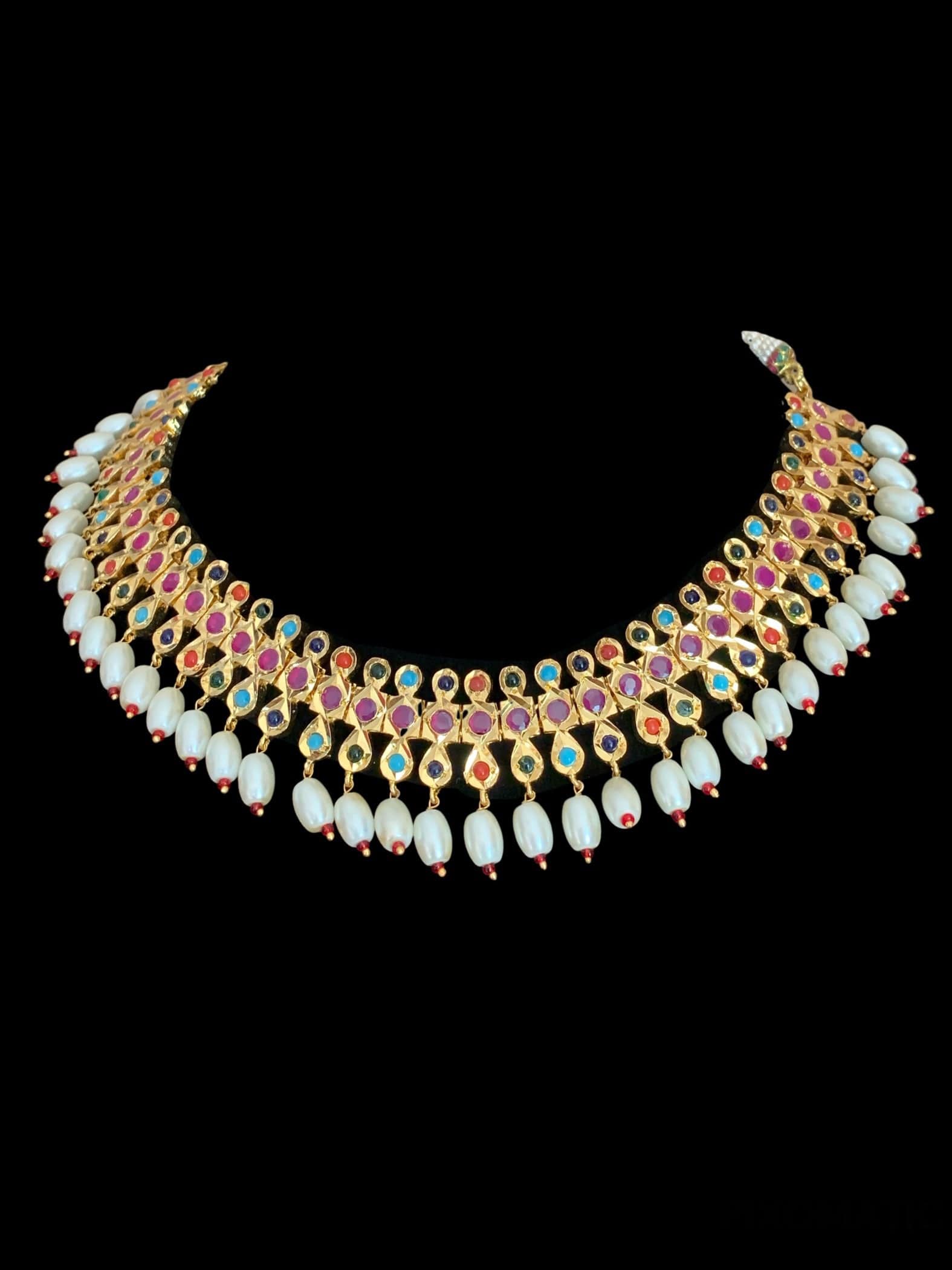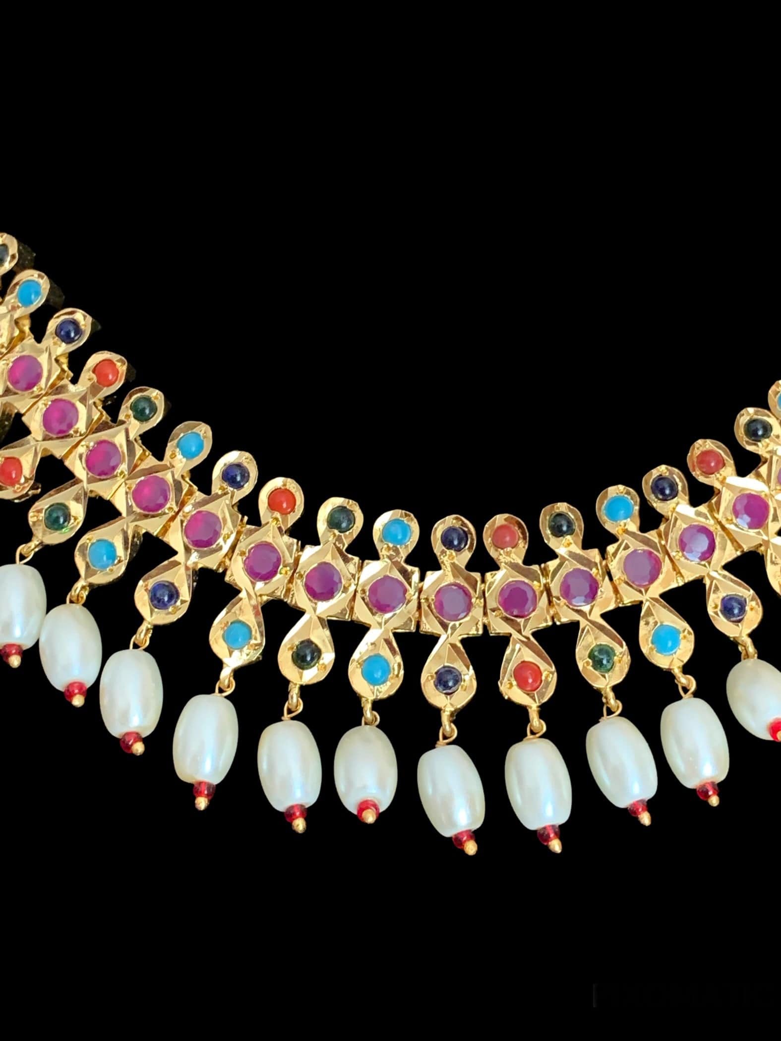 made using semi precious ruby beads with polki and 22ct gold plating