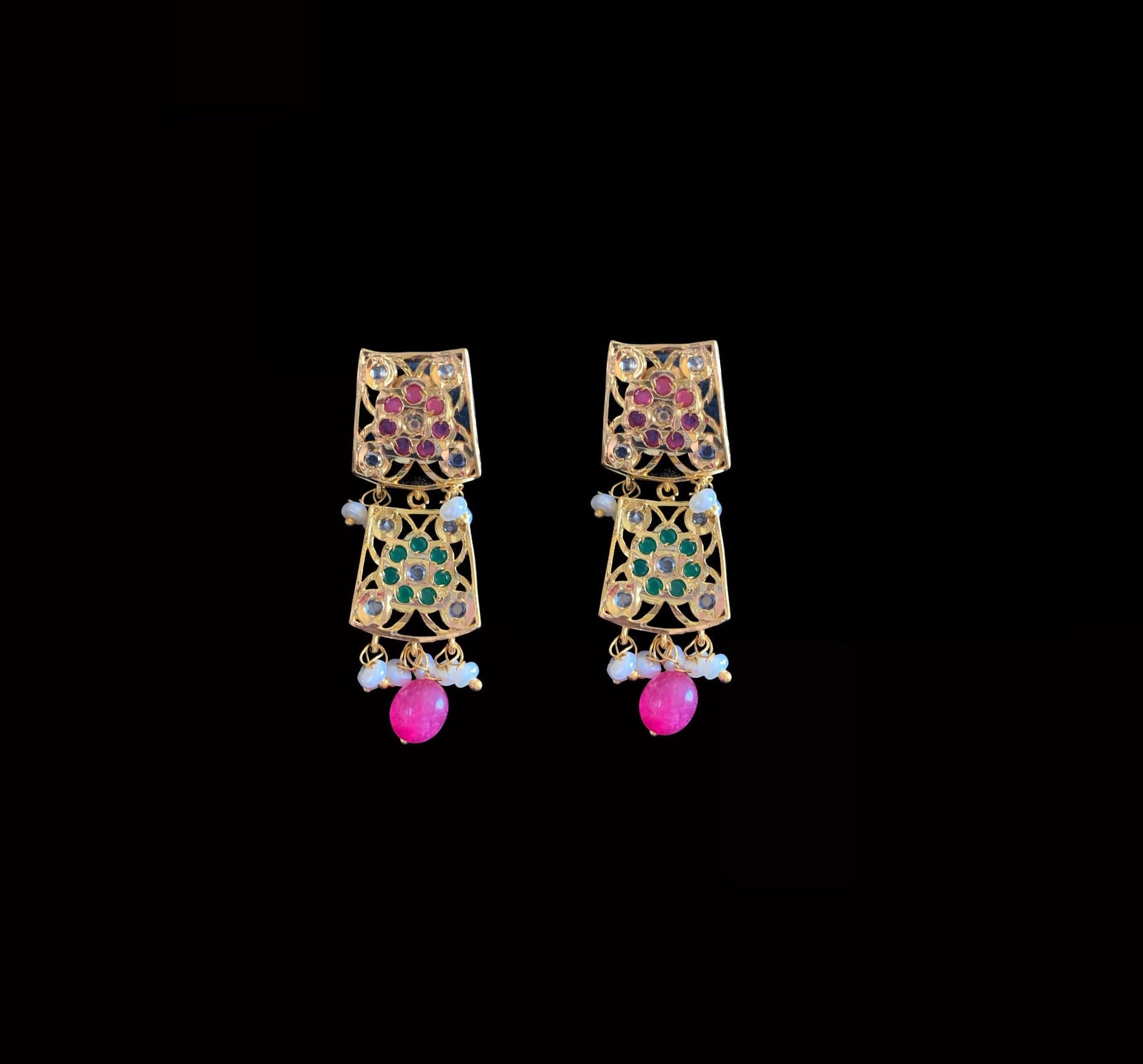NS141 Badia ruby emerald with fresh water pearls necklace set (READY TO SHIP )
