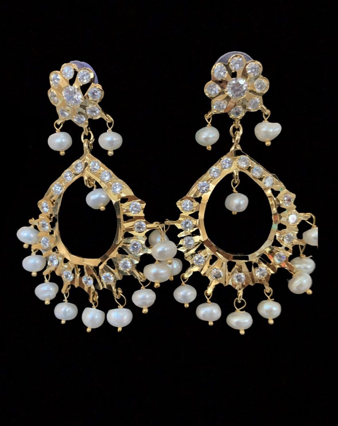 made using ad stones with 22ct gold plating wnd fresh water pearls used