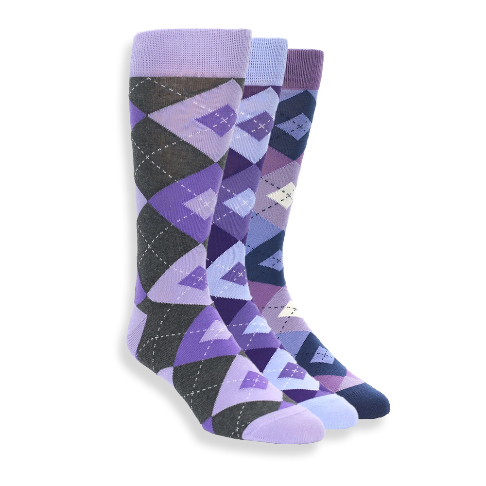 Purple Argyle Dress Sock Gift Box 3 Pairs