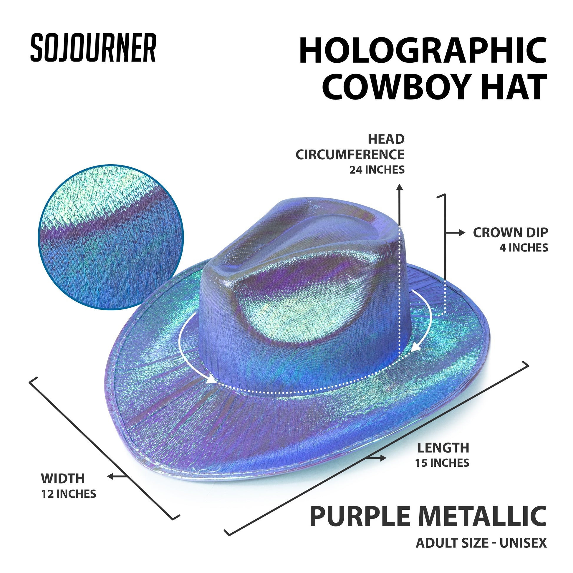- QUALITY - We use a high quality material for our holographic cowboy hat to hold their shape as well as maintain their iridescent sparkle and shine for your disco cowgirl bachelorette
