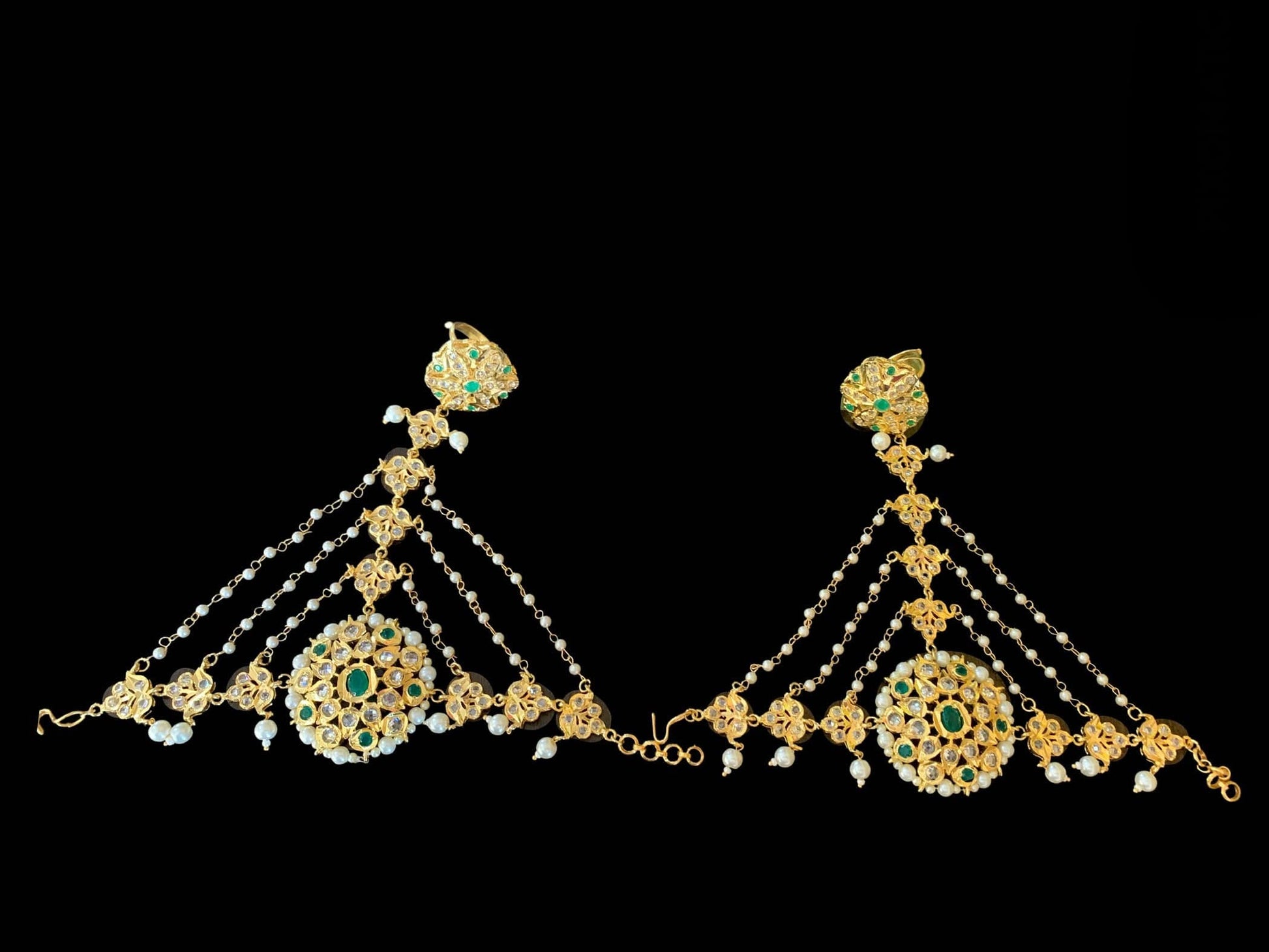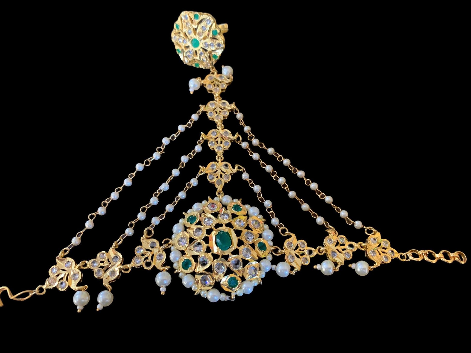 made using semi precious polki with shell pearls and 22 ct gold plating