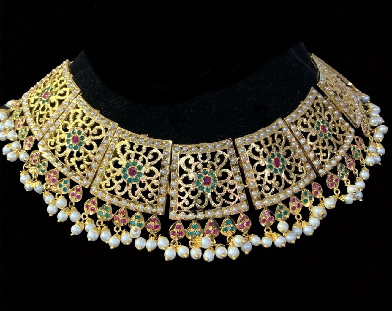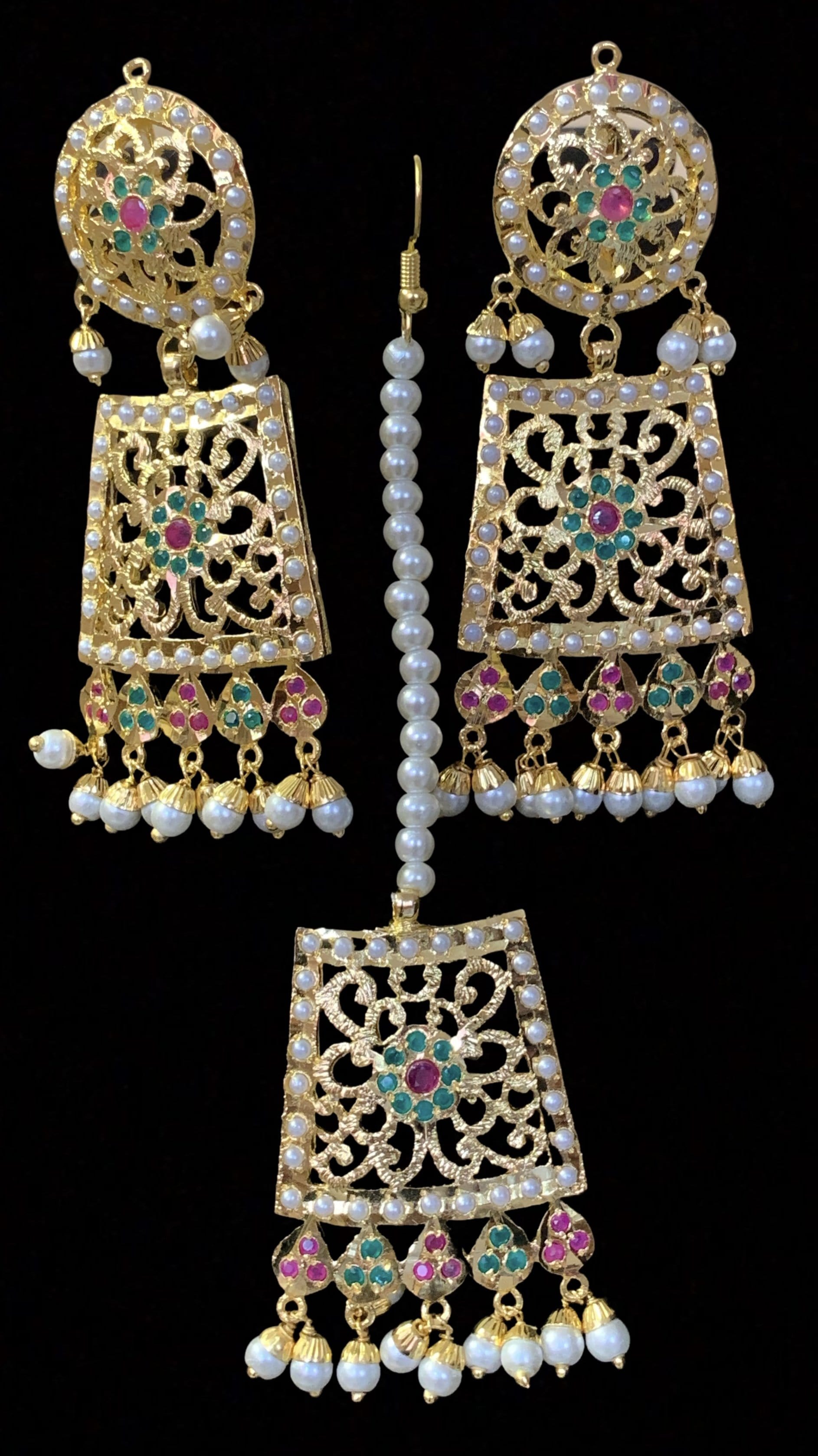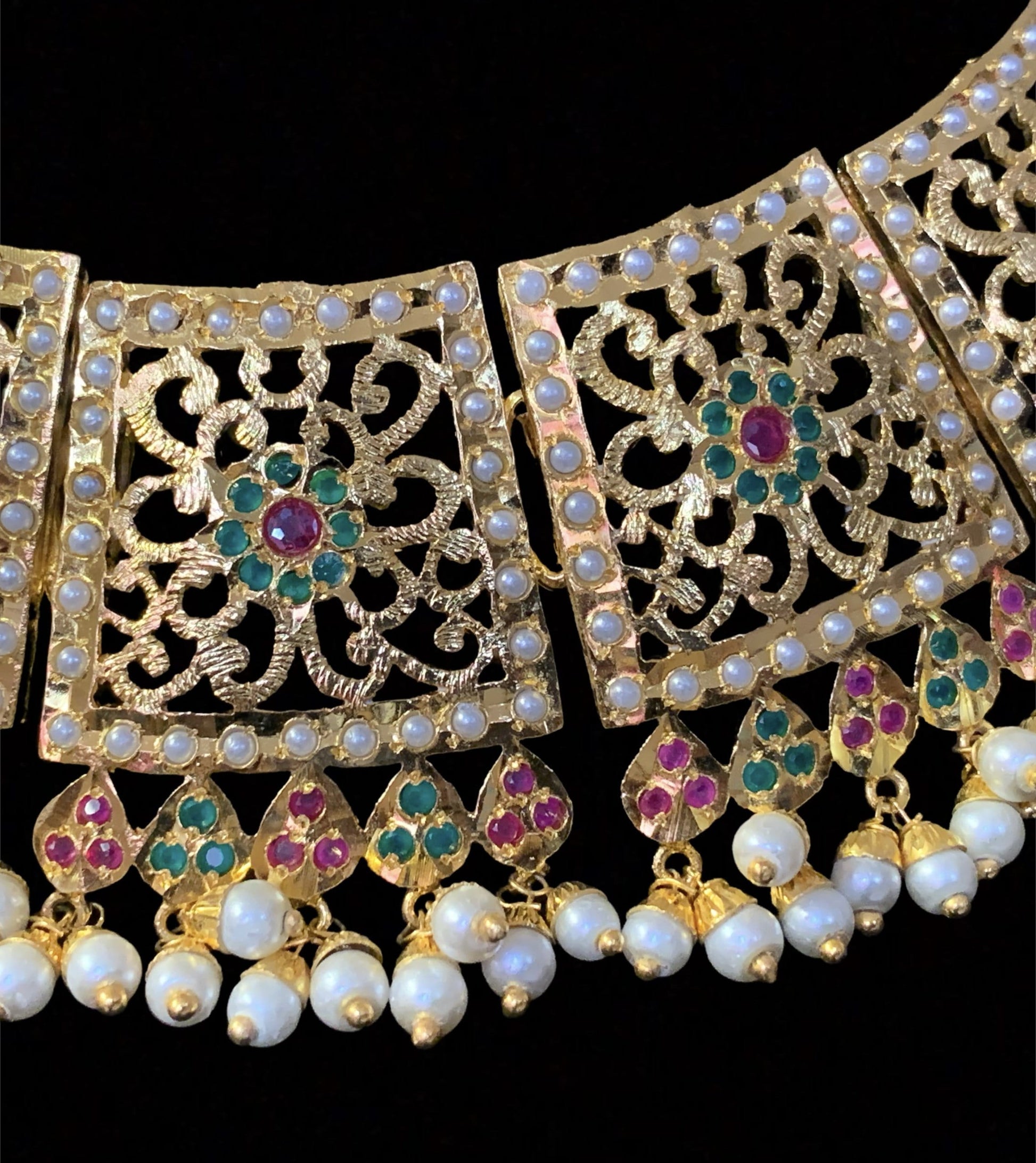 Safira necklace set with tika RUBY EMERALD ( READY TO SHIP)
