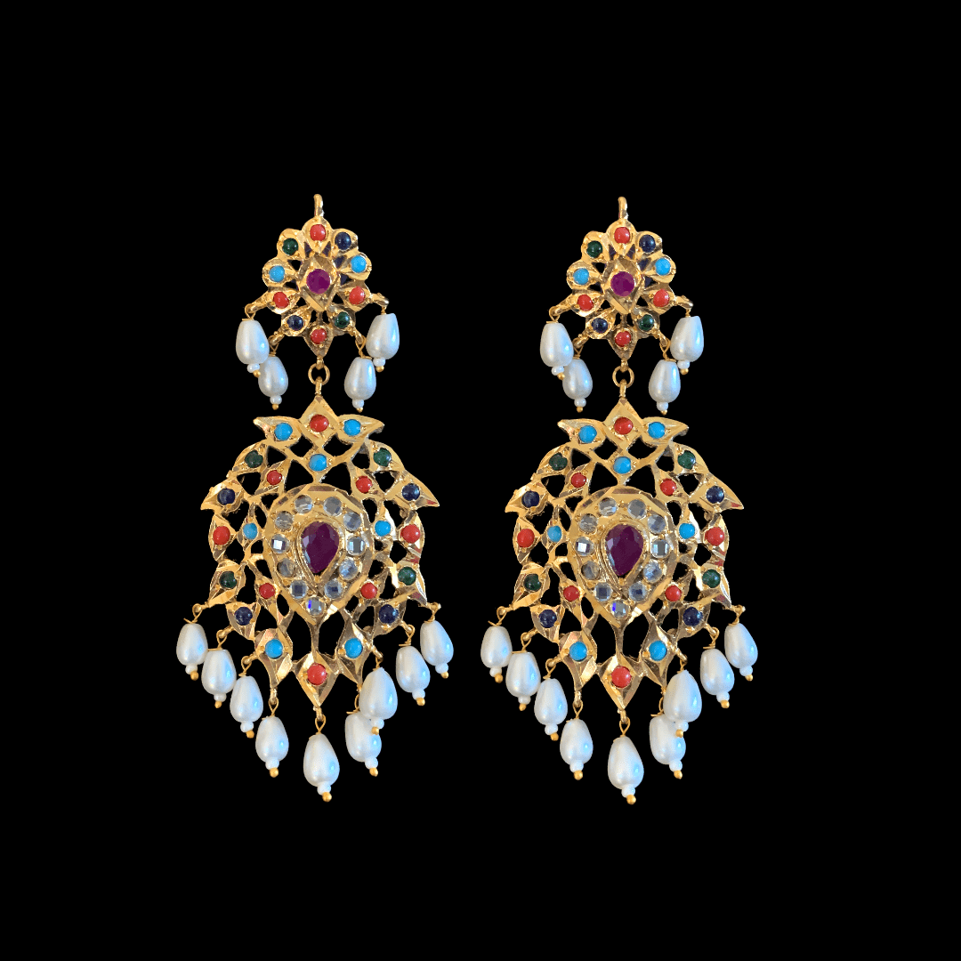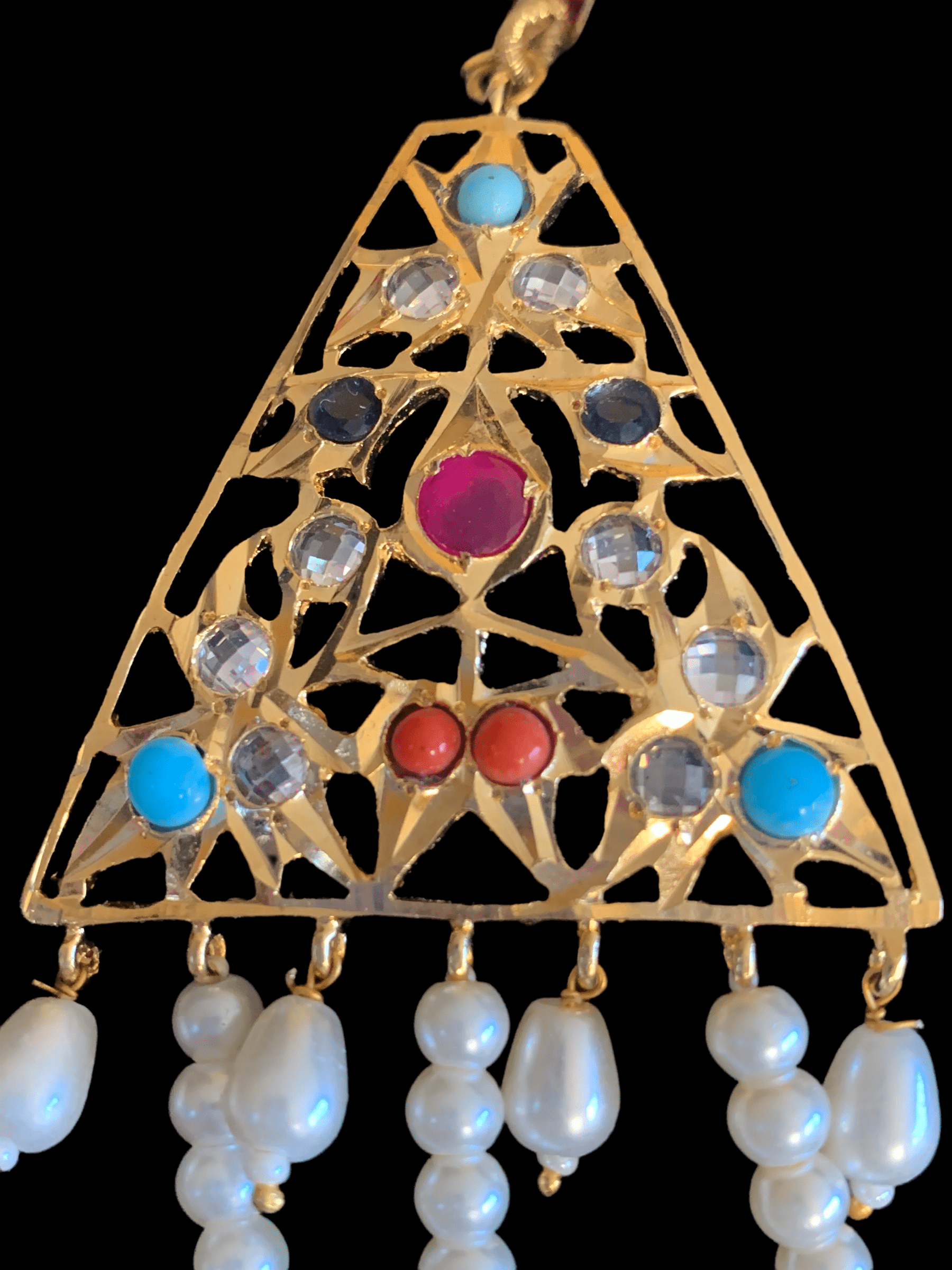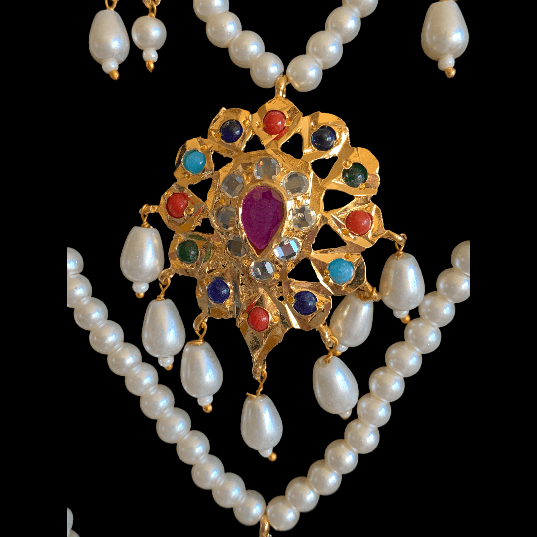 Made using shell pearls with polki ( navratan stones )