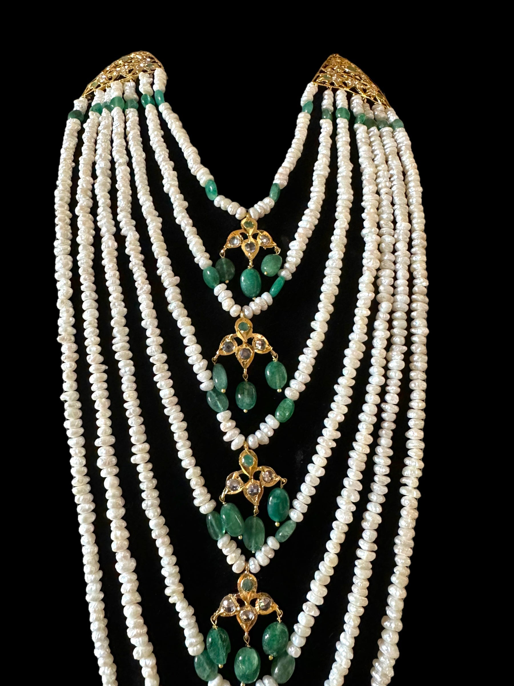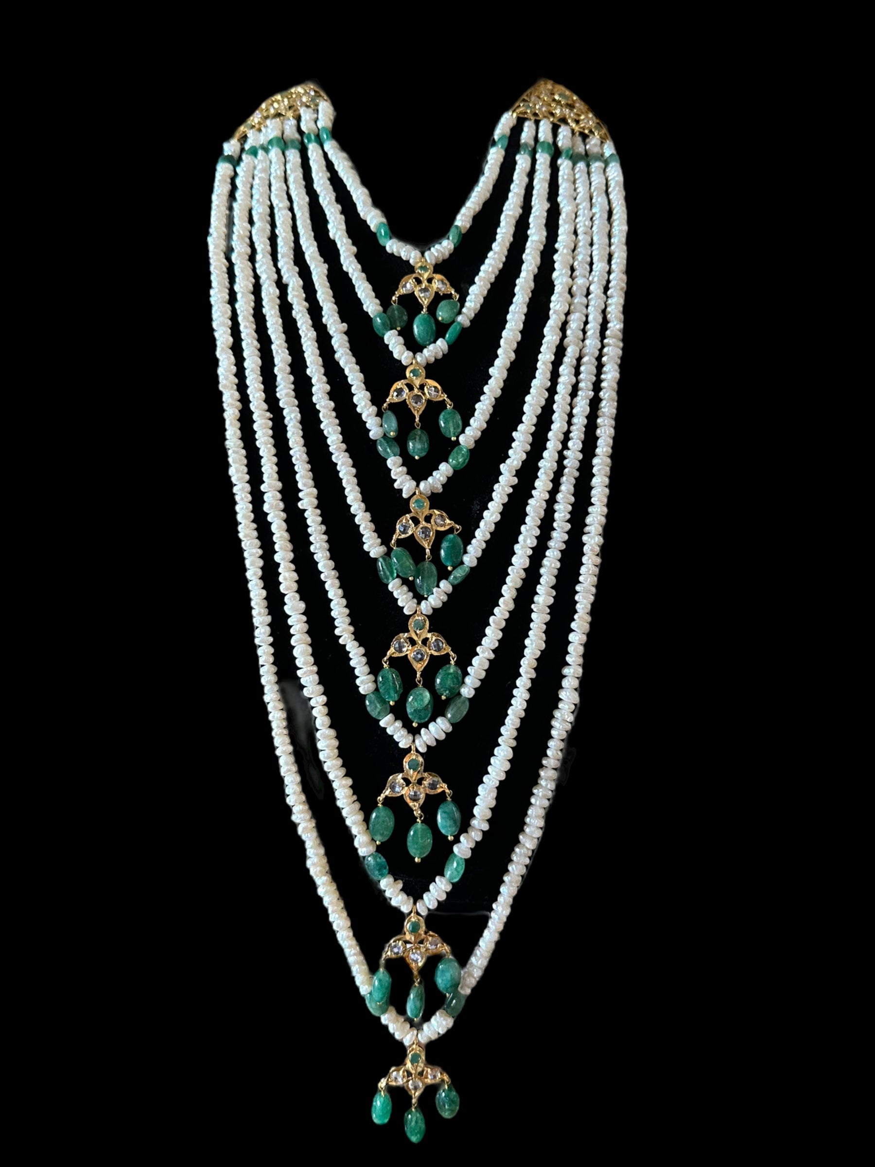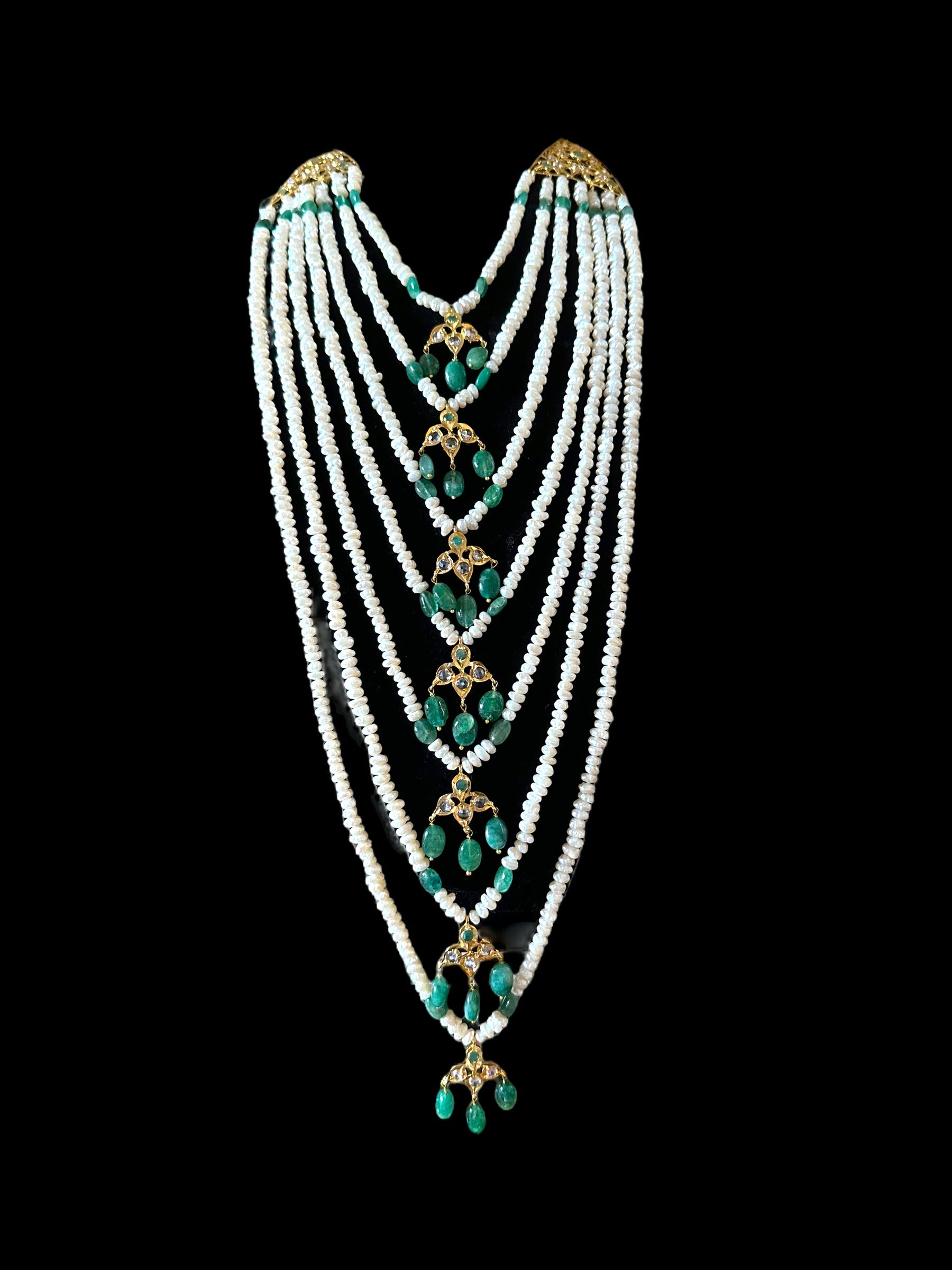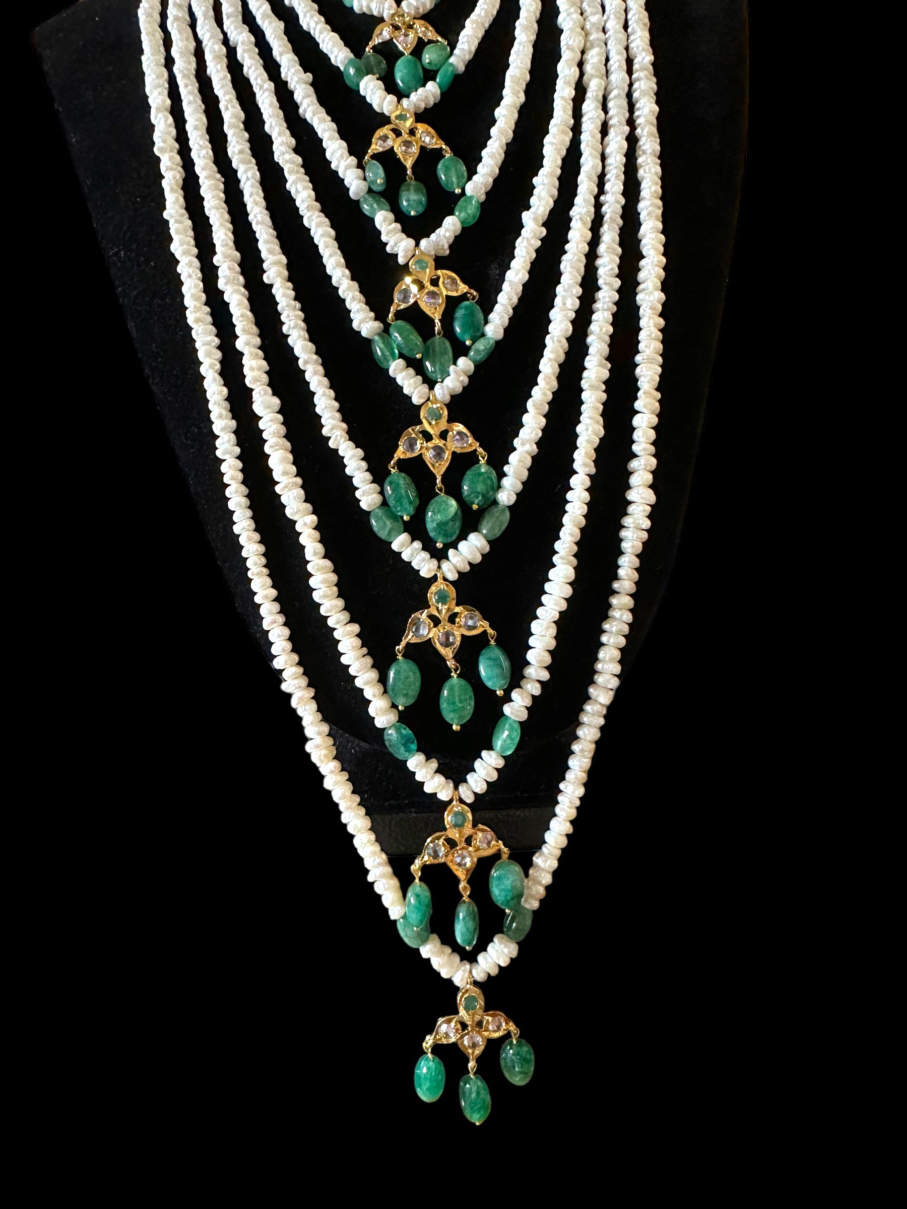 SAT81 Hyderabadi satlada in emerald beads and fresh water pearls (SHIPS IN 2 WEEKS )