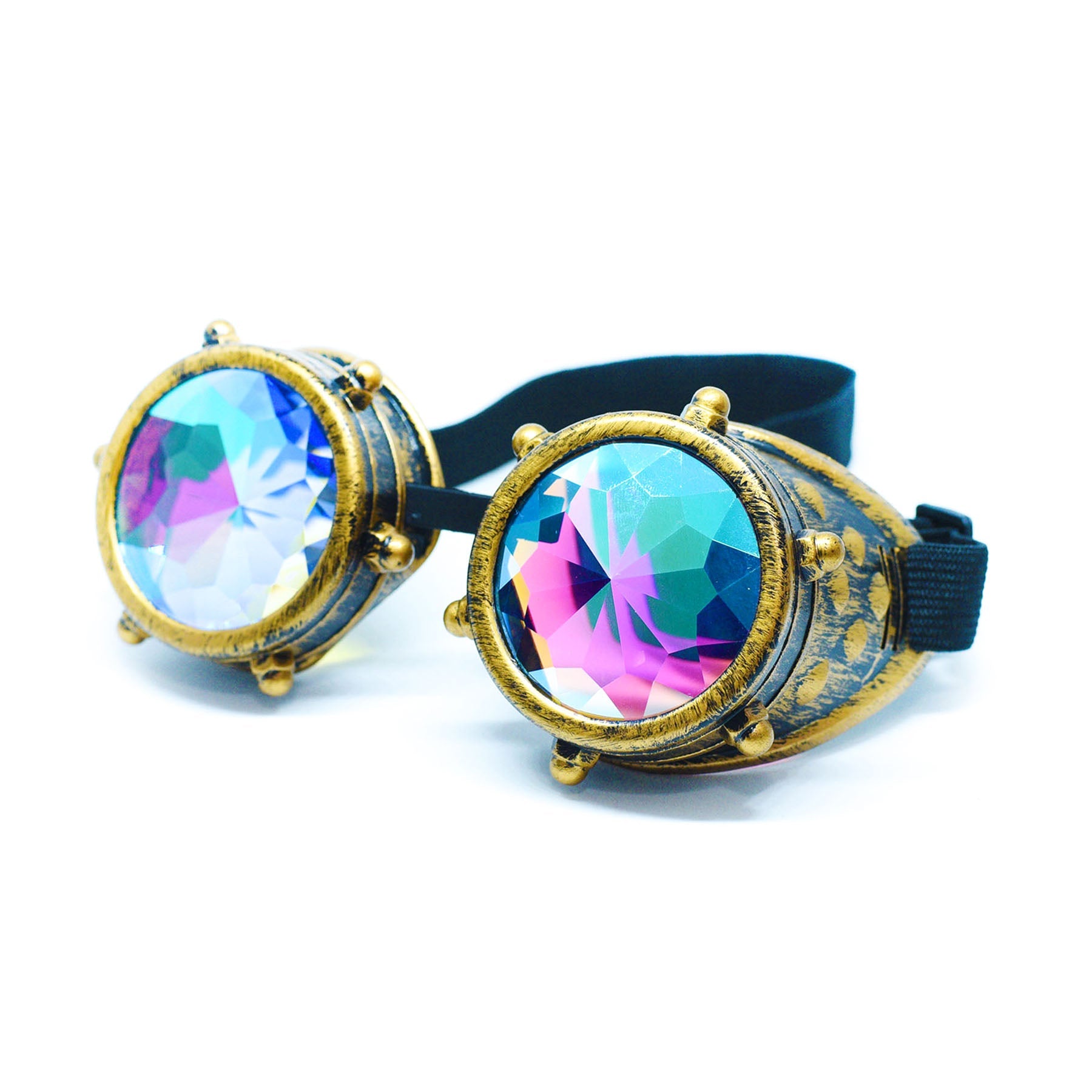 - CRYSTAL LENSE - Experience crazy trippy kaleidoscope glasses rainbow colors with clarity. Our steampunk goggles have top tier lenses