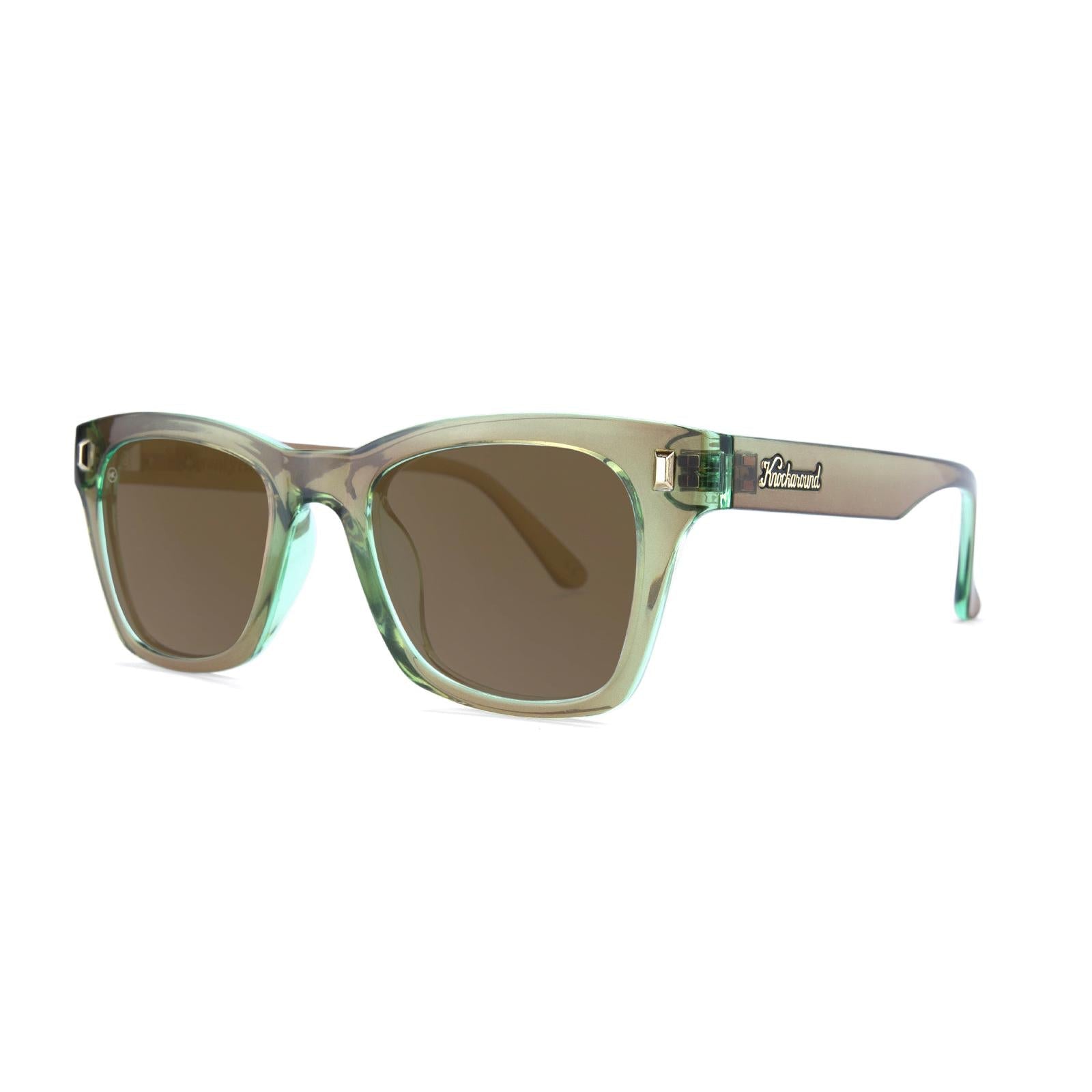 Translucent aged sage frames and polarized amber lenses add subtle color to this fashion-forward pair of Seventy Nines. These polarized clear green sunglasses perfectly balance contemporary cool with vintage appeal in a low-profile silhouette that’s perfect for small to medium-sized faces. Gold recessed hardware tops off this pair, which is fitted with practical touches like FDA compliant, impact resistant lenses with full UV400 protection, and durable 5-barrel hinges.