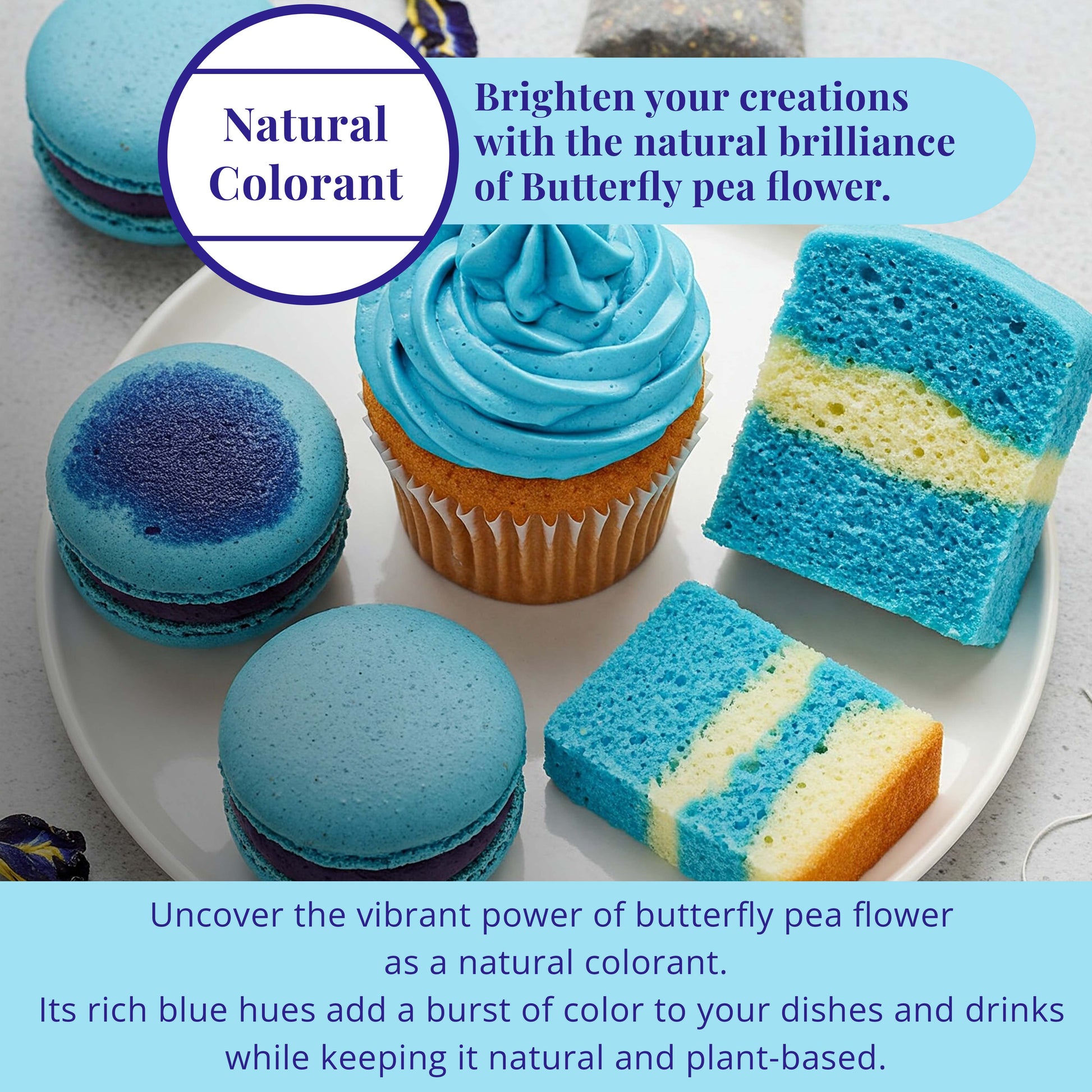 Pro Tip: Mix with lemonade, cocktails, or desserts for natural, naturally blue food visuals.