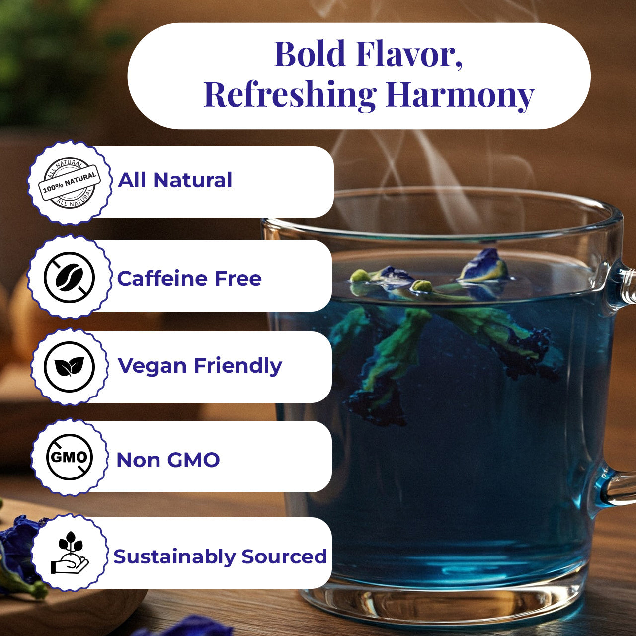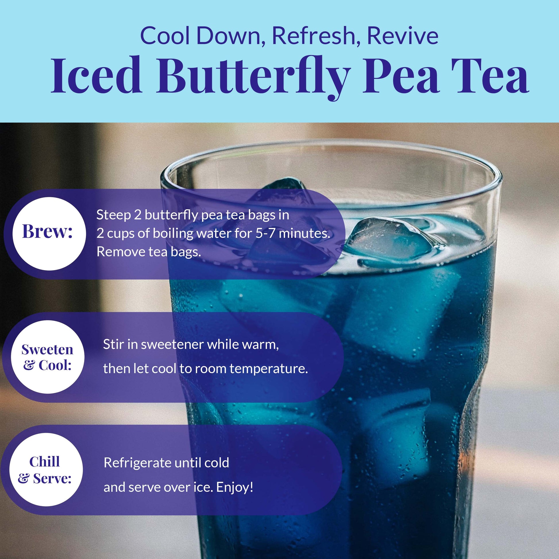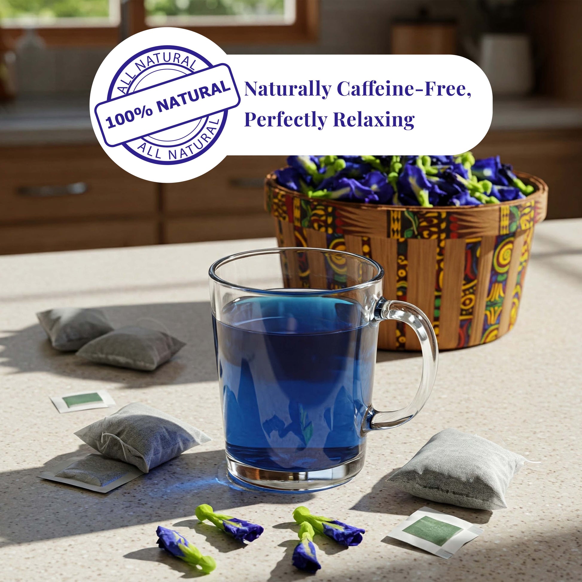 Brew it hot, iced, or with lemon for a mesmerizing color change from blue to purple—an instant wellness ritual that’s both soothing and spectacular.