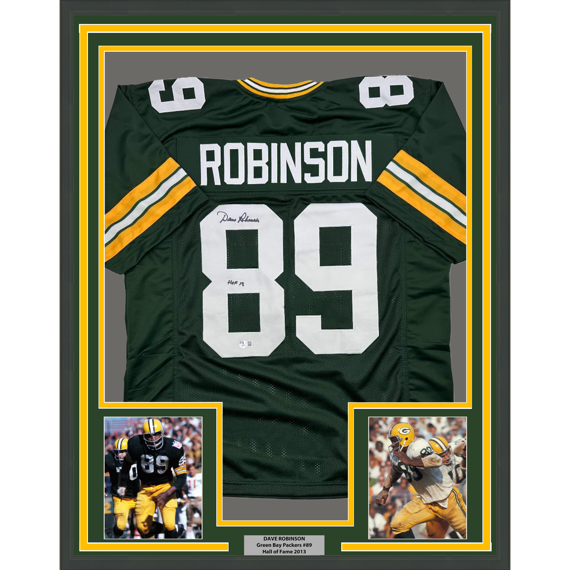 Framed Autographed/Signed Dave Robinson HOF 2013 35x39 Green Bay Packers Green Football Jersey JSA COA