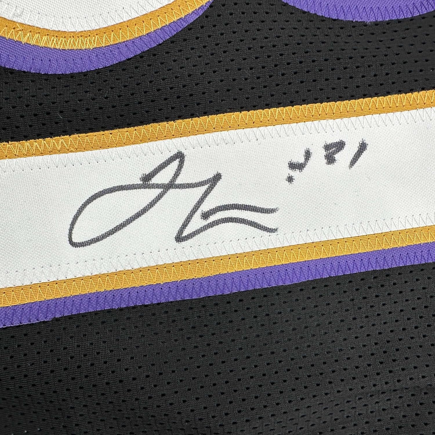 Framed Autographed/Signed Jamal Lewis 35x39 Baltimore Black Football Jersey JSA COA