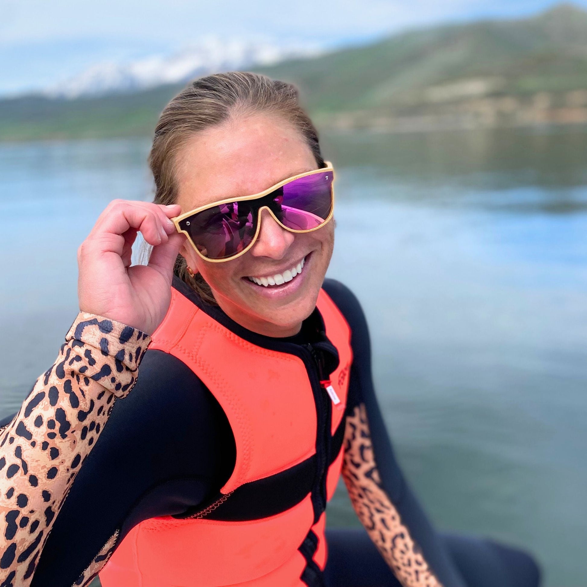 The Alejandra in Original Bamboo Sunglasses - a uniquely lightweight pair of eyewear built for your summer days at the lake. These uncommonly attractive sunnies are made with smooth bamboo wood and a reinforced spring metal hinge. The UV400 polarized rose one-piece mirror lens protects your gorgeous eyes and will also likely draw a bit more positive attention than usual.