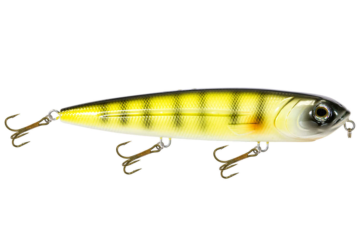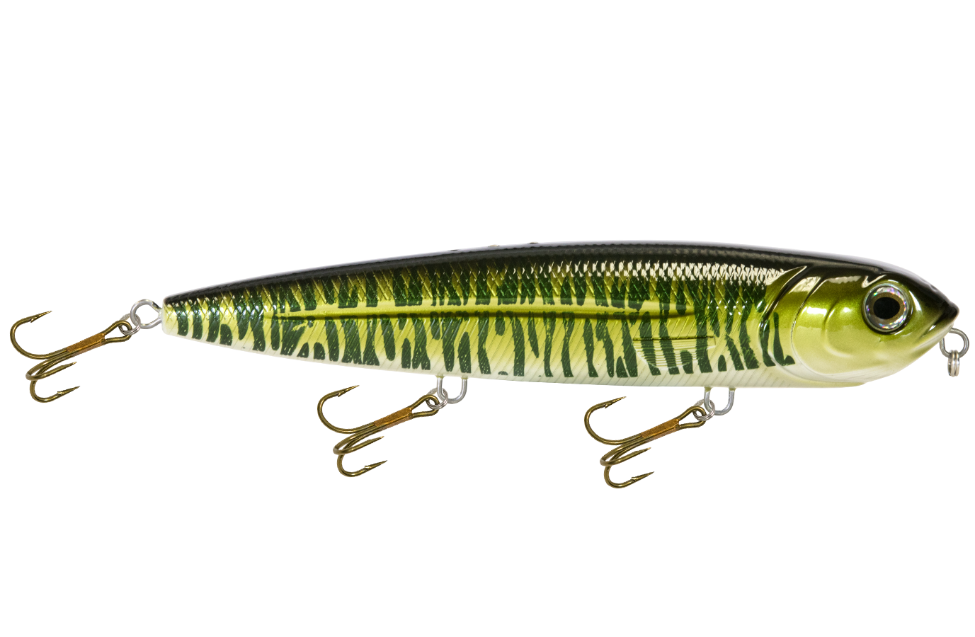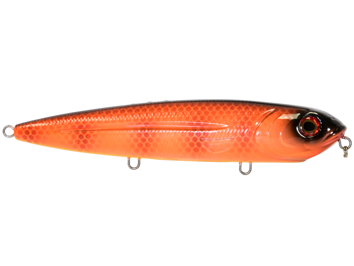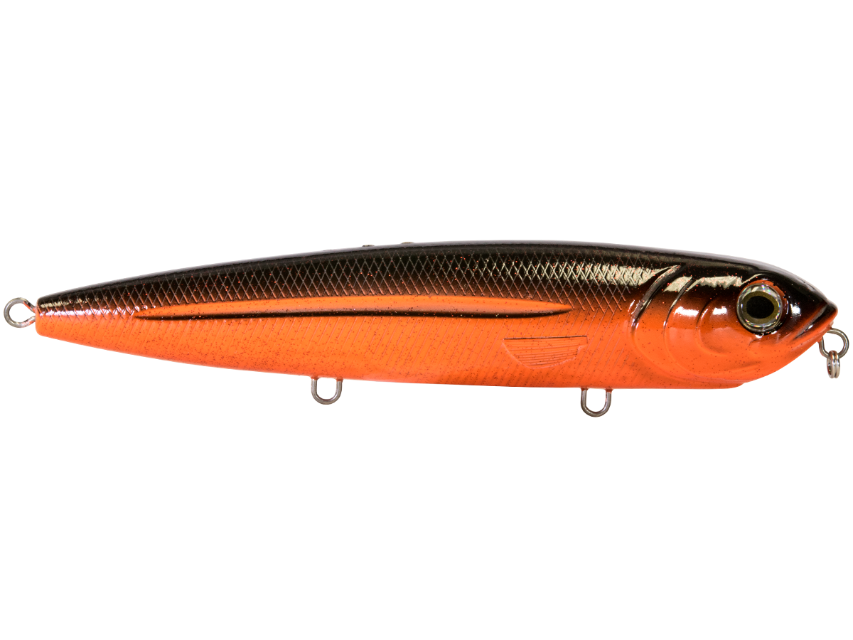 The 8-inch WALKING BOSS MAGNUM is the new pinnacle for walking baits. Enhanced with the power of EBS and designed to produce an irresistible side-to-side topwater commotion, the Walking Boss Magnum is a can't-miss for giant musky and pike, to name a few. The bait's elongated body design produces a flashy "walk the dog" action, while EBS reaches out to predators at double the distance of traditional lures! Add sturdy 2mm wire through construction and VMC 4X premium hooks and you have a topwater lure that's built to withstand the abuse of the multiple fish it attracts.
