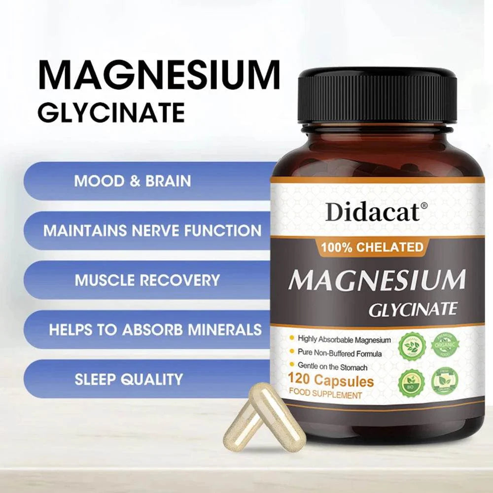 Pure Magnesium Glycinate Supplements Have the Highest Absorption and Highest Bioavailability: Magnesium glycinate is better absorbed than other magnesium salts such as magnesium oxide, magnesium citrate powder, and magnesium sulfate. Chelated magnesium is absorbed faster, so it can provide faster relief. Chelated magnesium complex is gentle on the stomach, easy to digest, and has no laxative effect.
