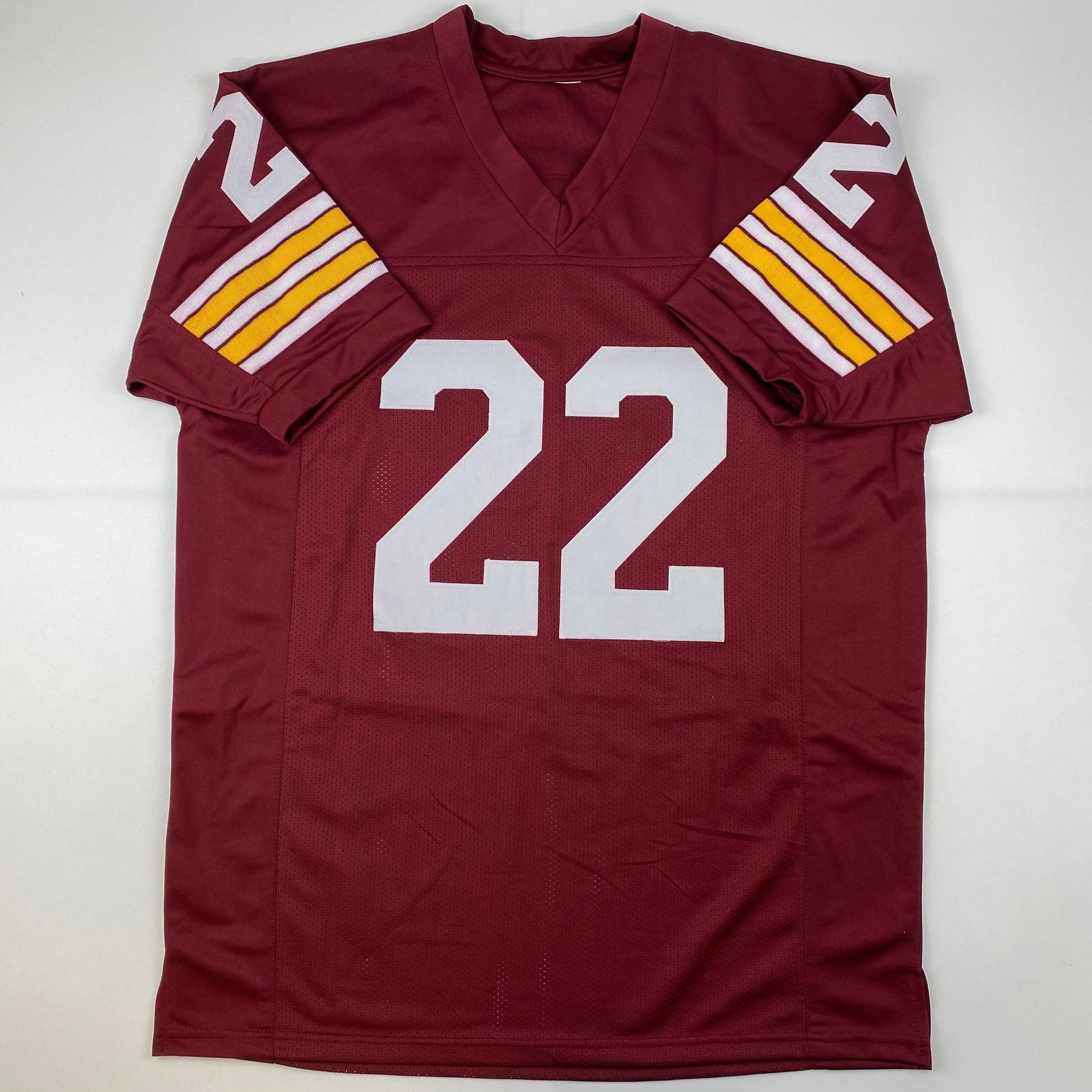 Jersey has no brand names or logos. This is a custom jersey and was not manufactured by or in any manner associated with any professional sports league or manufacturer. This custom jersey carries no professional sports league designation. The item is intended to be an autographed collectible. The custom jersey displays the name and number of the player. This item in no way is affiliated with or connected to any professional sports organization. Size is XL.