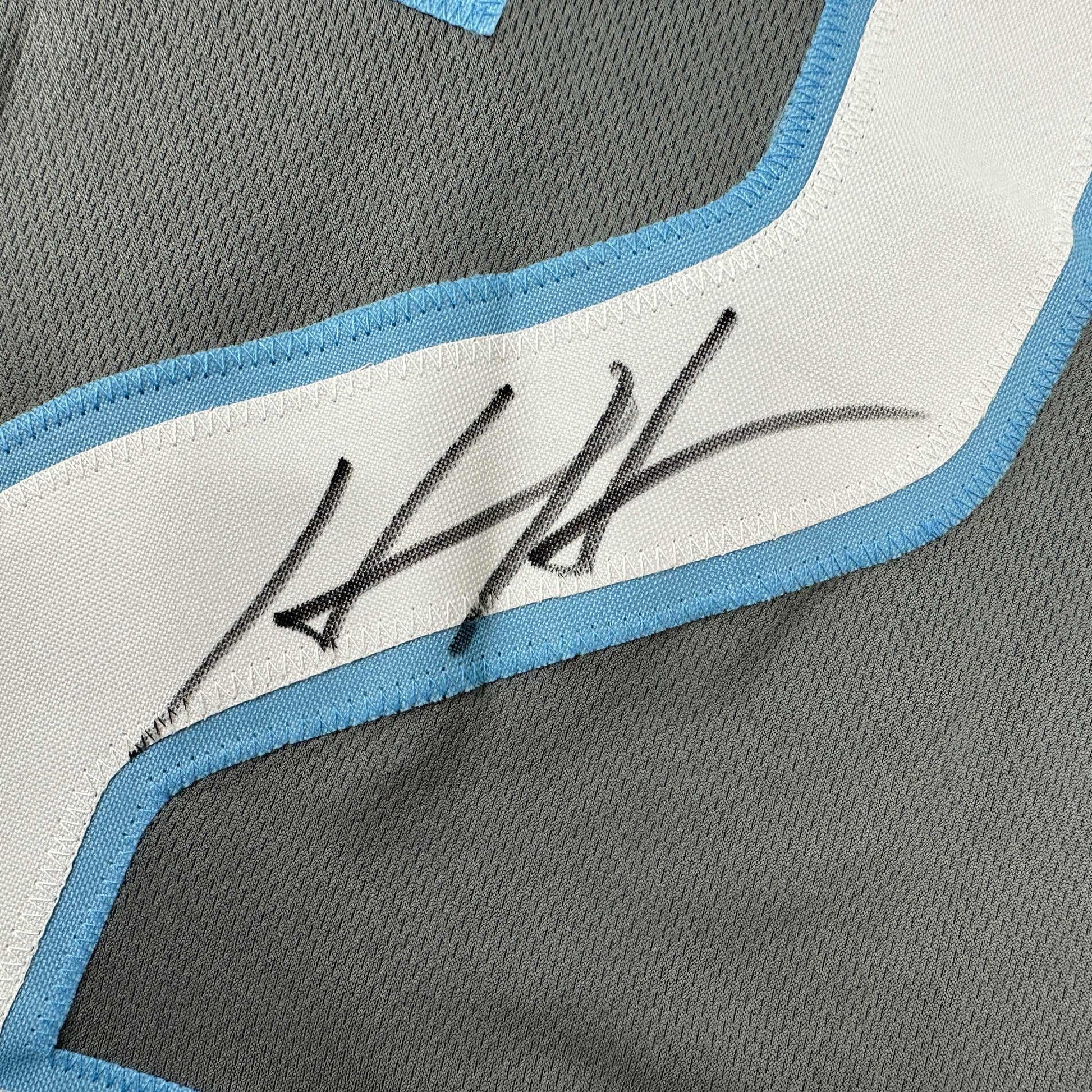 Jersey has no brand names or logos. This is a custom jersey and was not manufactured by or in any manner associated with any professional sports league or manufacturer. This custom jersey carries no professional sports league designation. The item is intended to be an autographed collectible. The custom jersey displays the name and number of the player. This item in no way is affiliated with or connected to any professional sports organization. Size is XL.