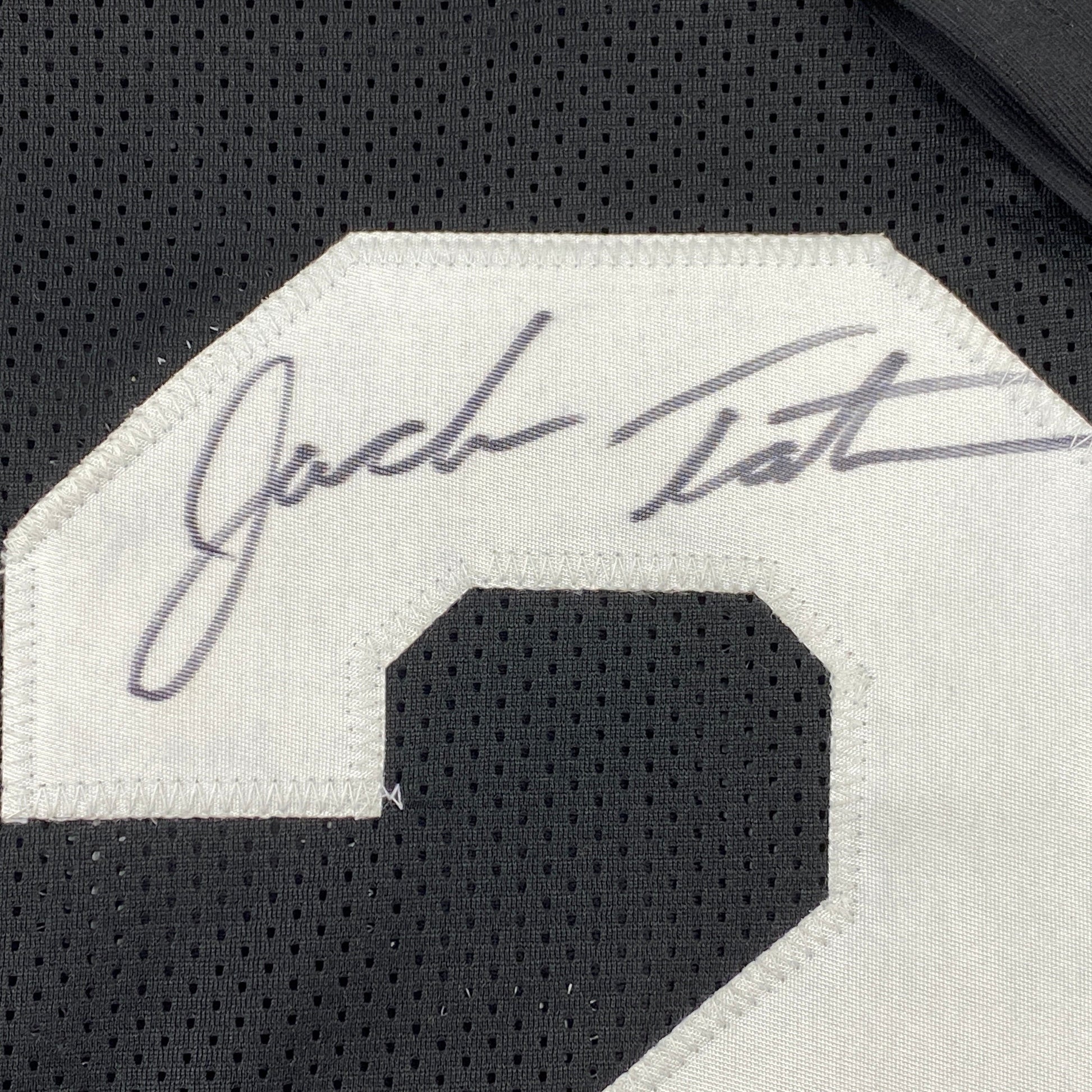 Jersey has no brand names or logos. This is a custom jersey and was not manufactured by or in any manner associated with any professional sports league or manufacturer. This custom jersey carries no professional sports league designation. The item is intended to be an autographed collectible. The custom jersey displays the name and number of the player. This item in no way is affiliated with or connected to any professional sports organization. Size is XL.