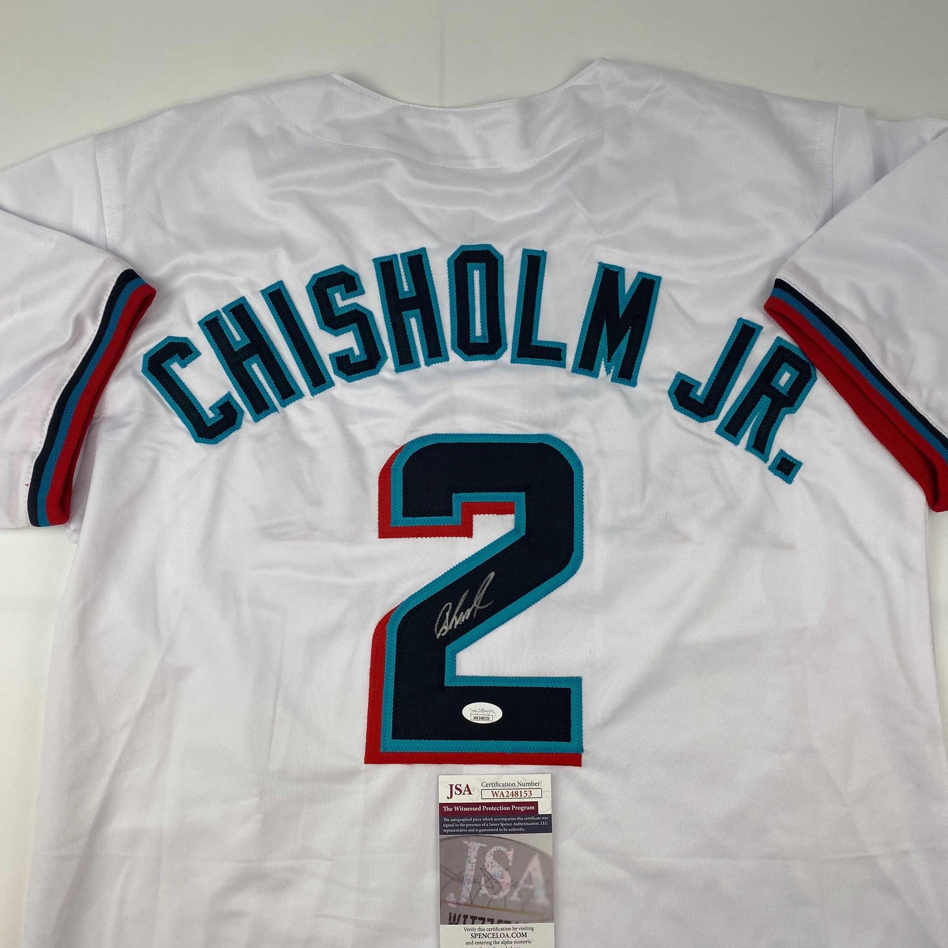 Autographed/Signed Jazz Chisholm Jr. Miami White Baseball Jersey JSA COA