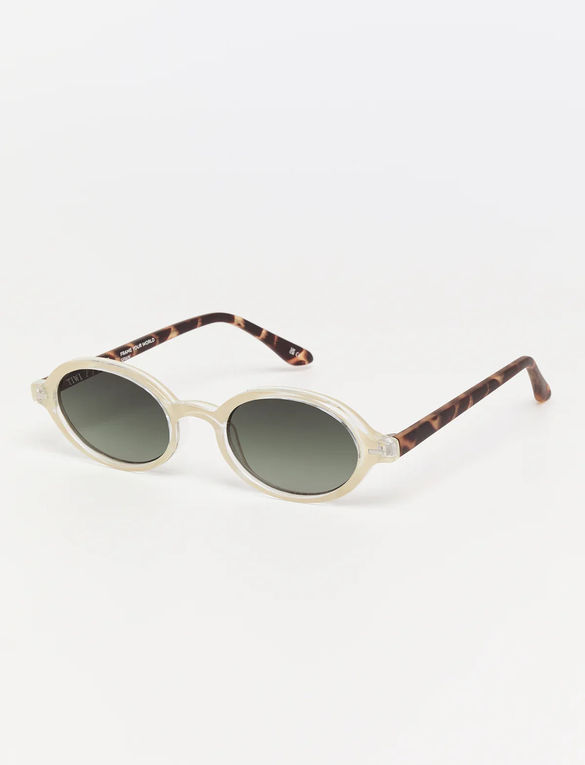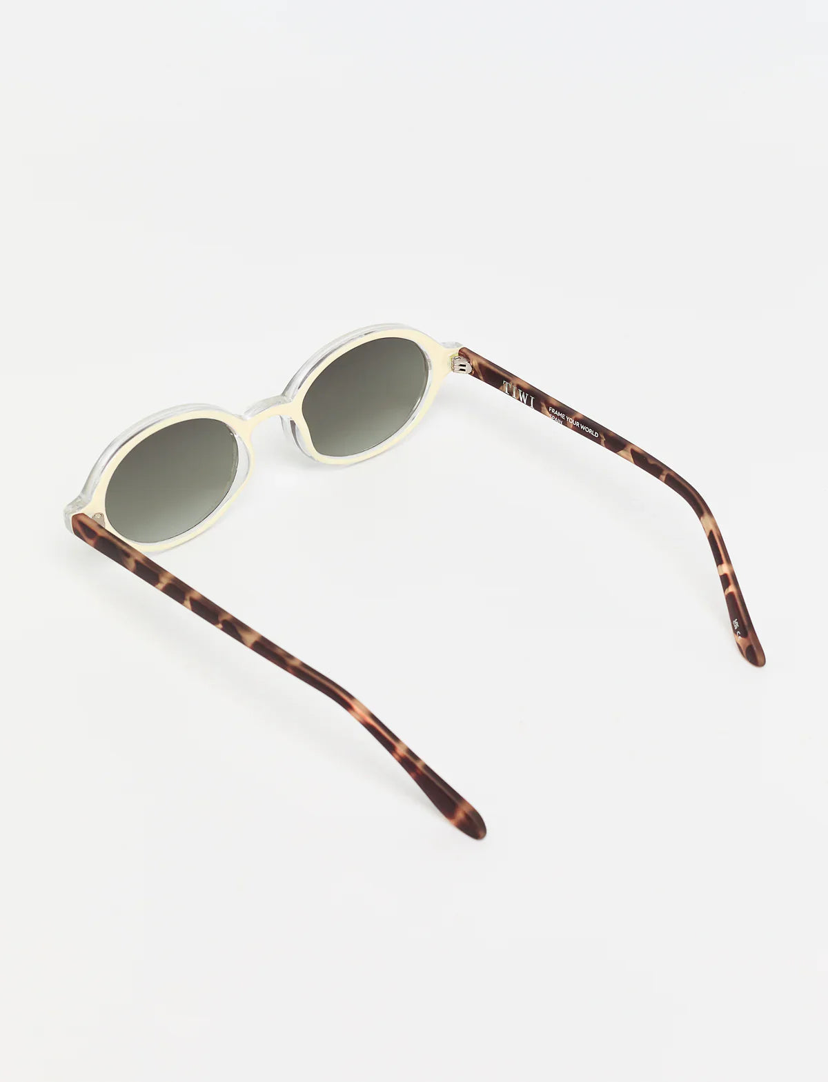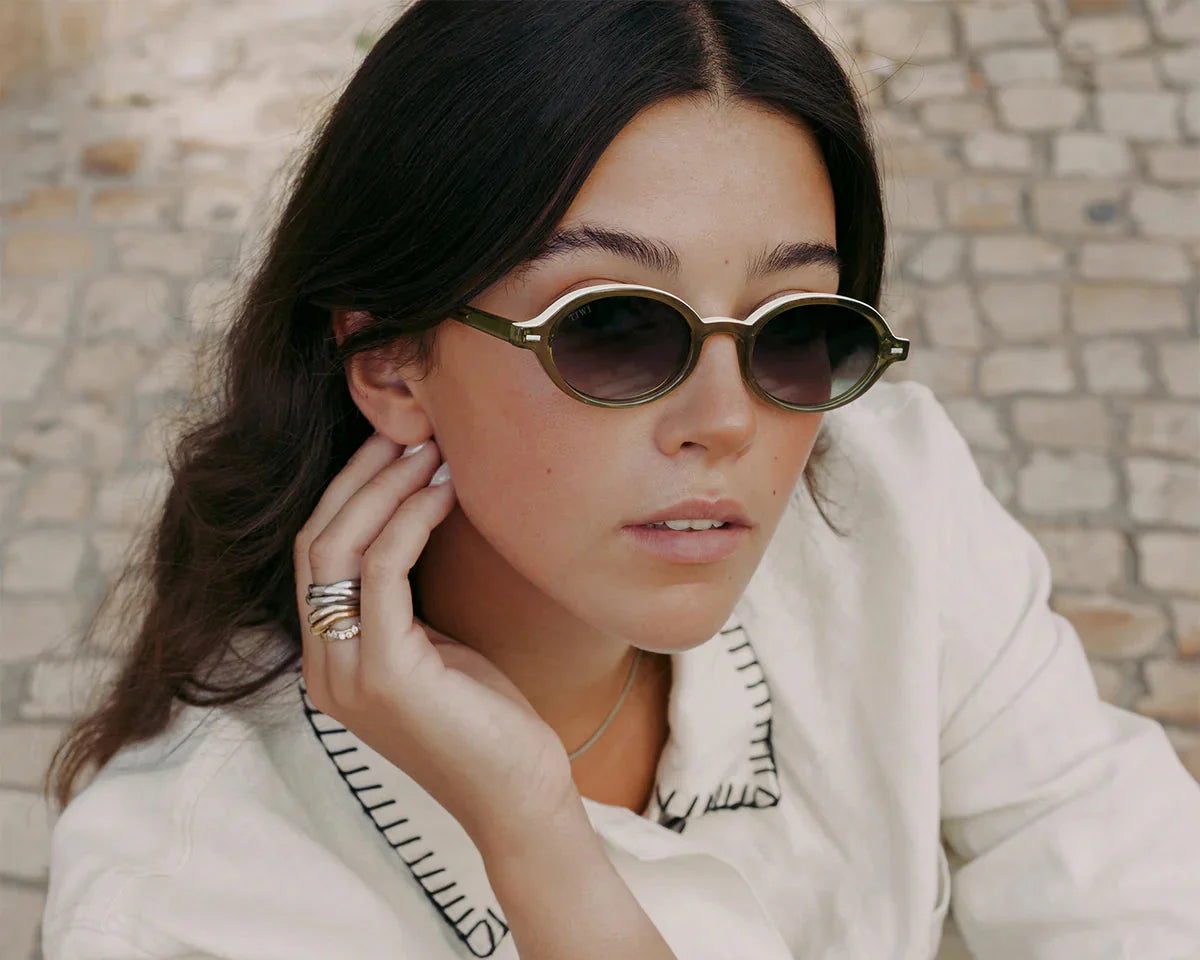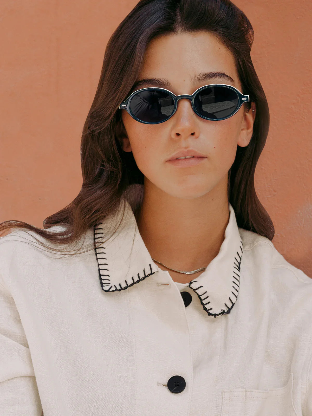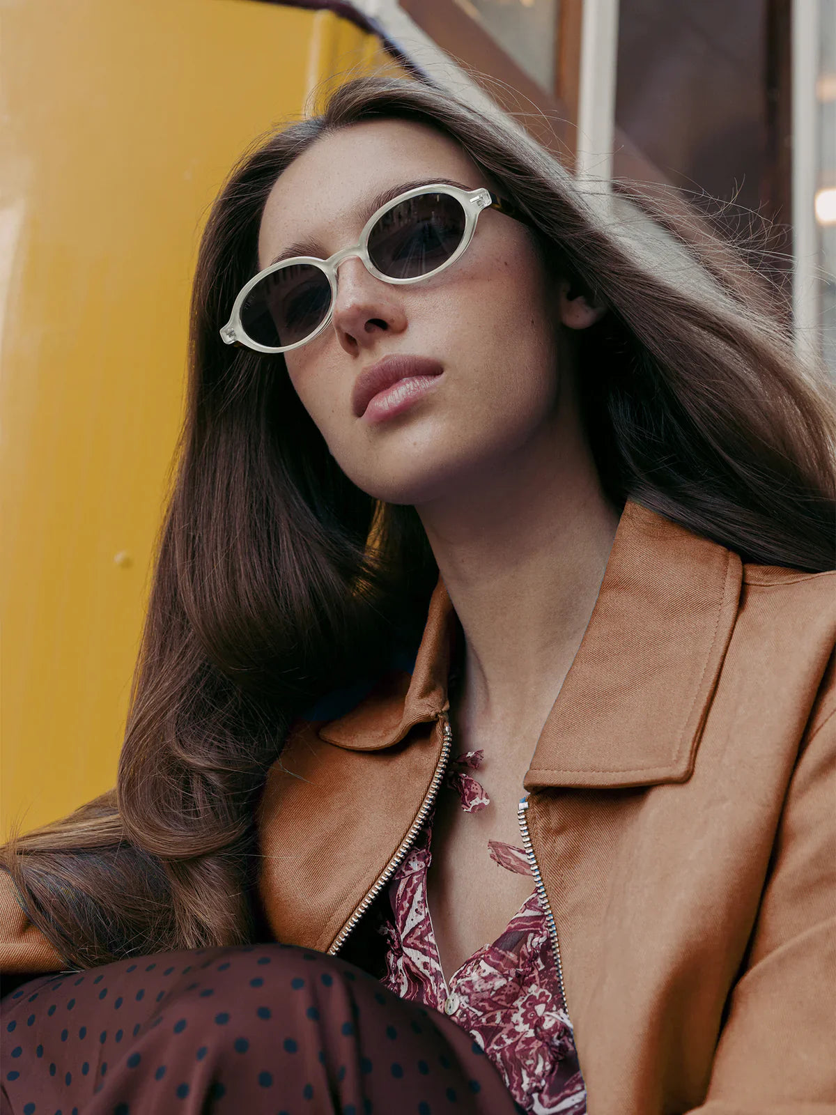 With an oval shape and soft lines inspired by the '90s, BELL stands out for its slim, elongated front, which provides freshness and versatility. A subtle and magnetic design, available in translucent acetates such as ocean blue, shiny beige, or shiny olive green, as well as in more classic versions such as Havana.