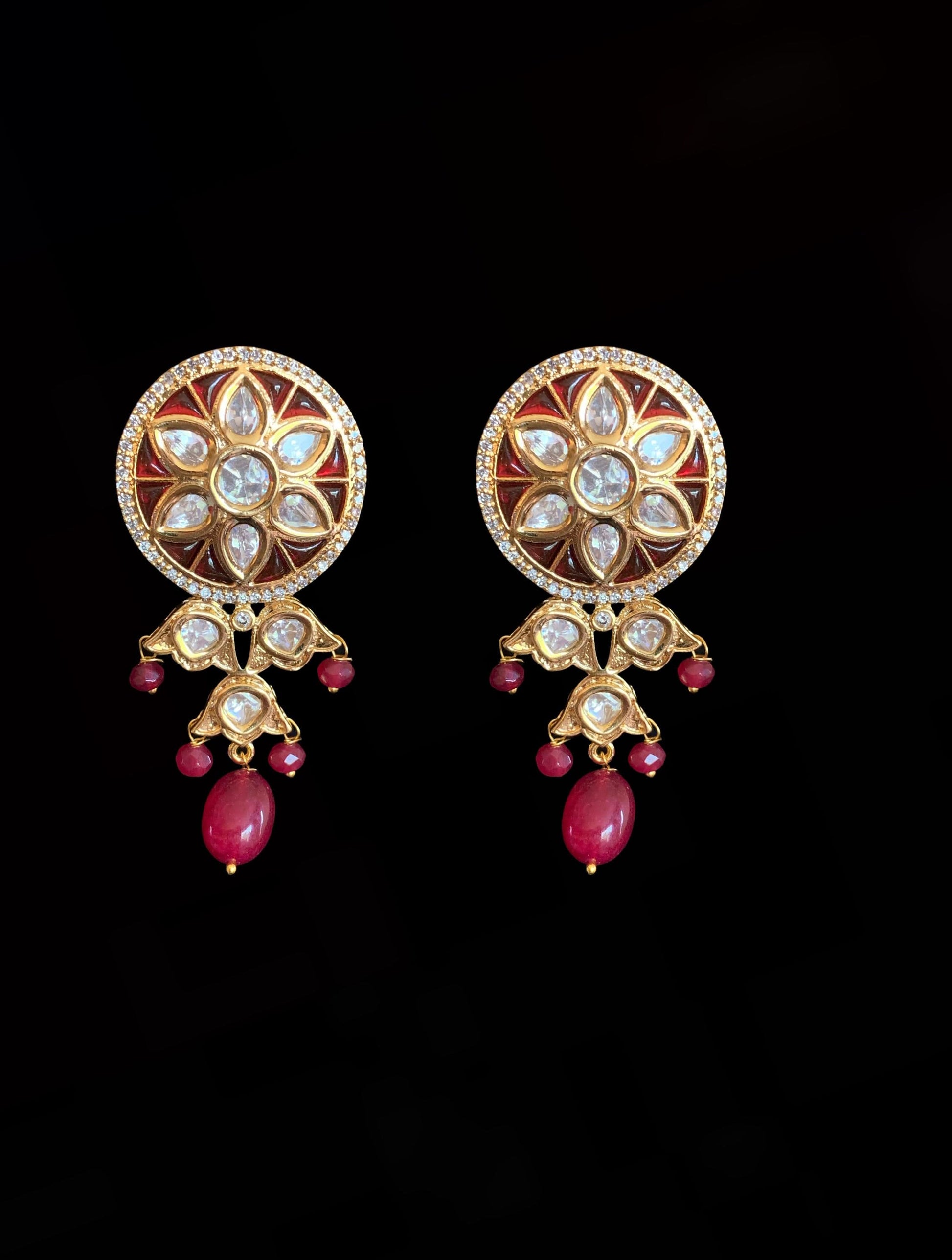 made using silver foil glass polki with gold plating