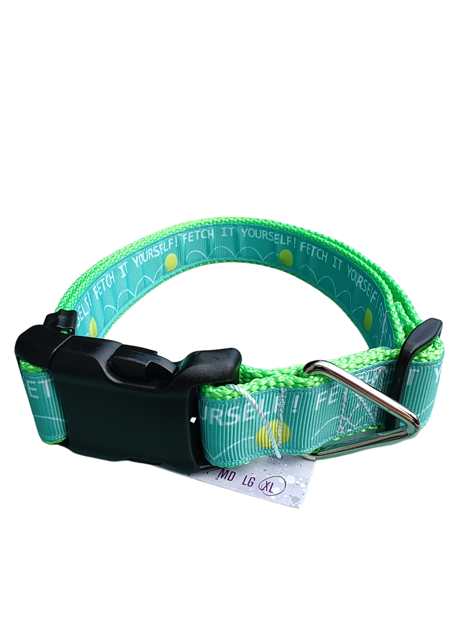 Fetch It Yourself! Neon Green Nylon Dog Collar MD, LG, XL, Leash