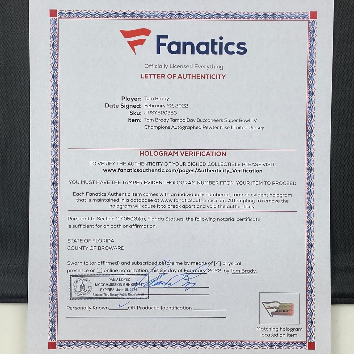 The item is professionally framed and matted with two 5x7 photos, measures 35x39 inches and is ready to be hung in your man cave! Photo and matting requests can be made.