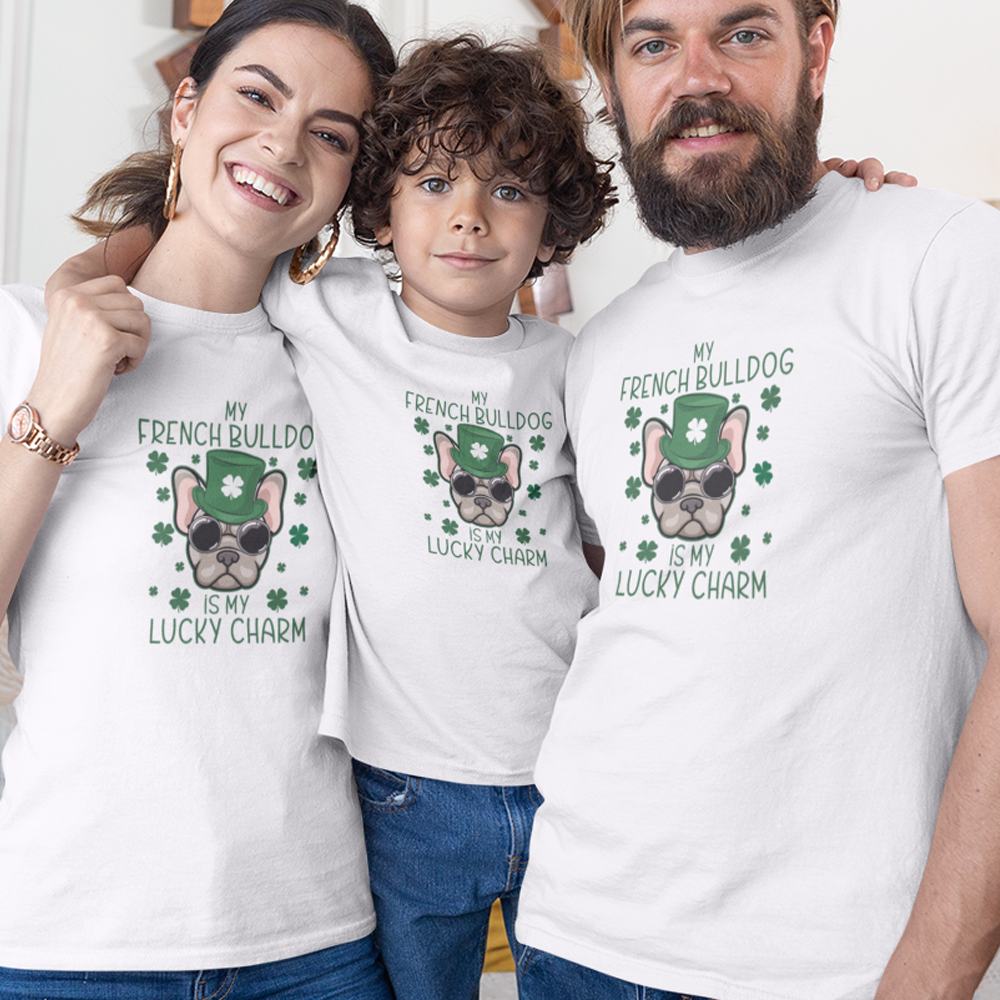 My French Bulldog Is my Lucky Charm Matching Organic Cotton T-Shirts Family Set (Set of 3)