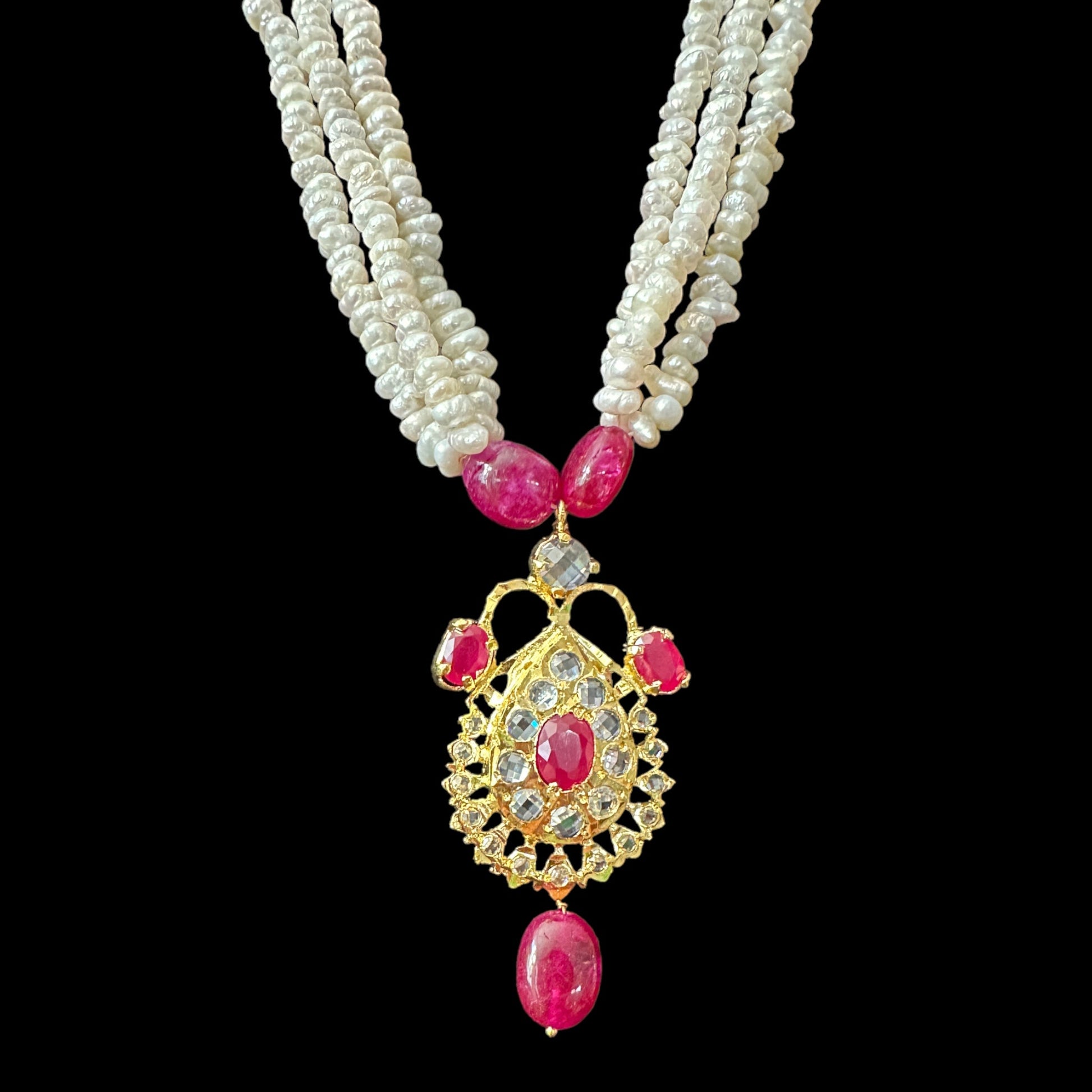 PS303 Jugni in fresh water pearls and rubies ( SHIPS IN 4 WEEKS )