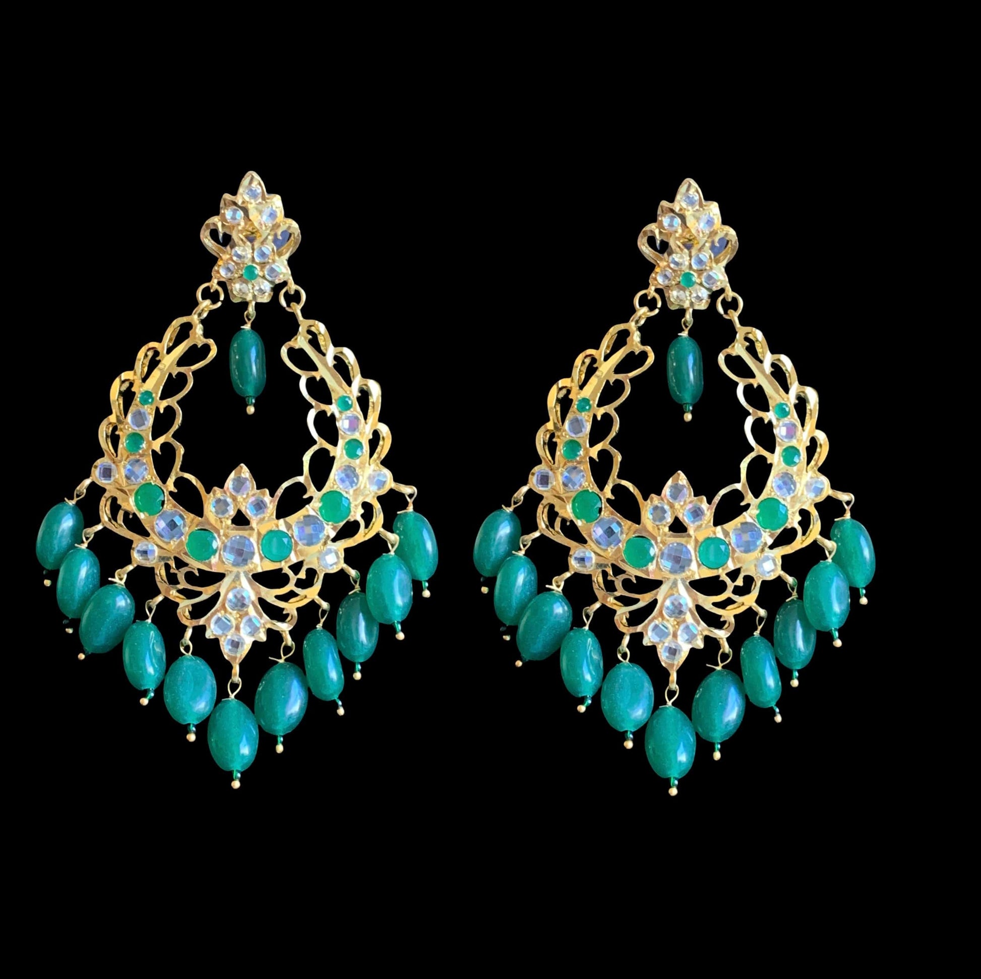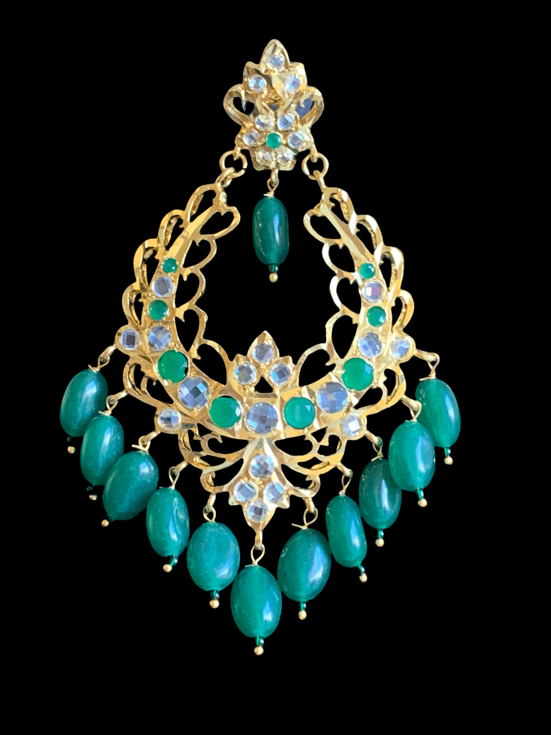 Tirmani in Rani haar style with Chandbali in green ( SHIPS IN 3 WEEKS )