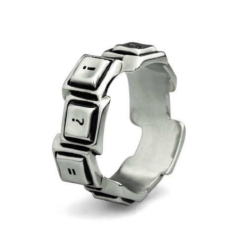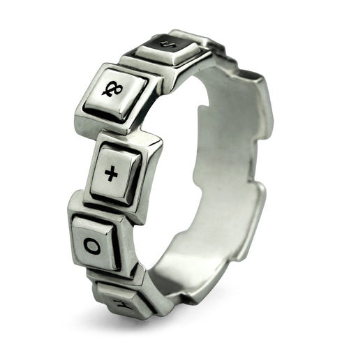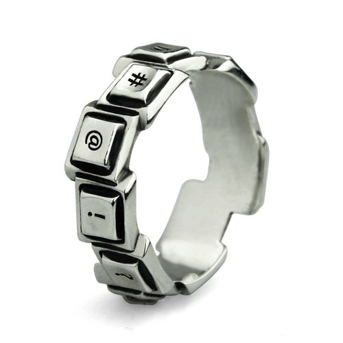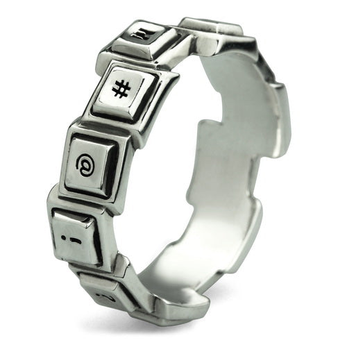 Tactile and techy, TYPO is a sterling silver ring built for the digital native and the analog soul. Each sculpted keycap draws from the classic computer keyboard, featuring familiar symbols that once sparked chatroom chaos, coded revolutions, and late-night epiphanies.