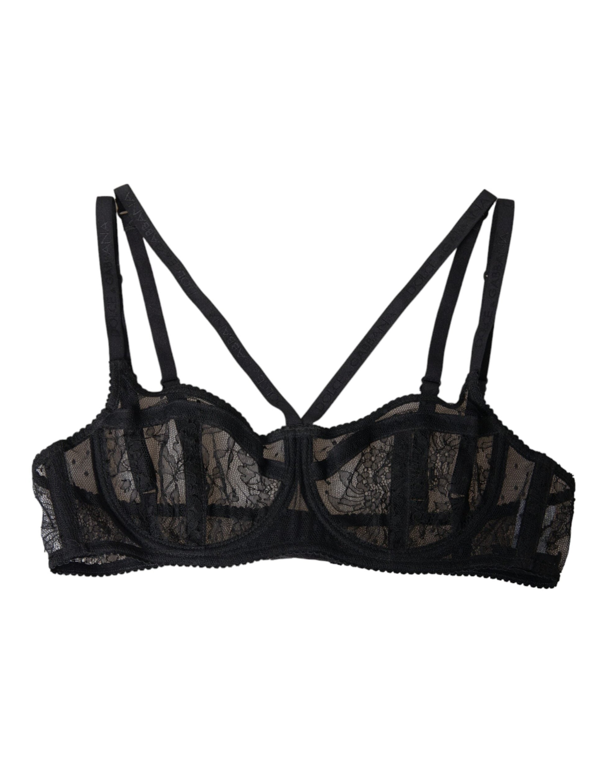 Dolce & Gabbana Black Floral Lace Nylon Balconcino Bra Underwear