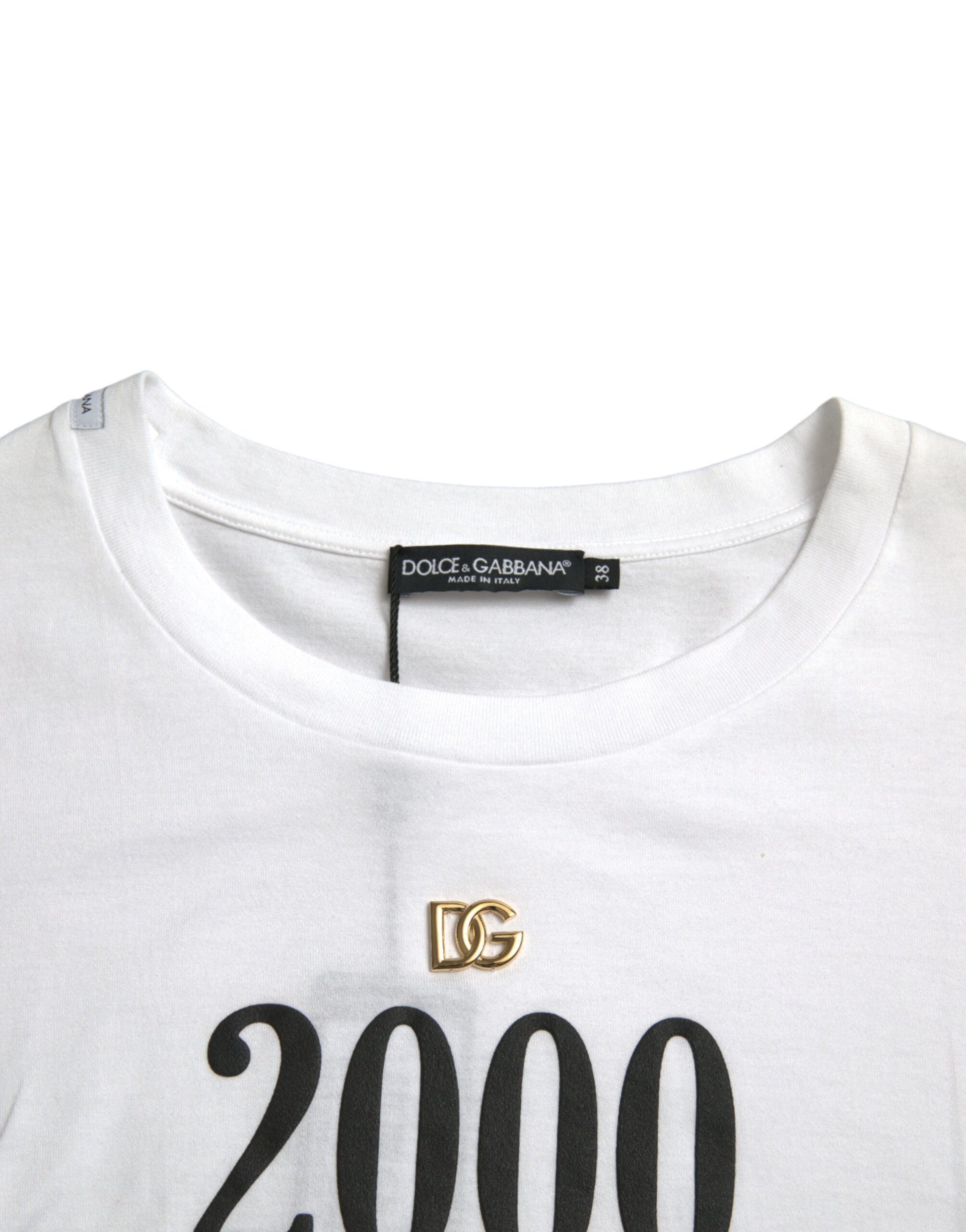 Dolce & Gabbana White Slogan Print Lacing Detailed T-shirt