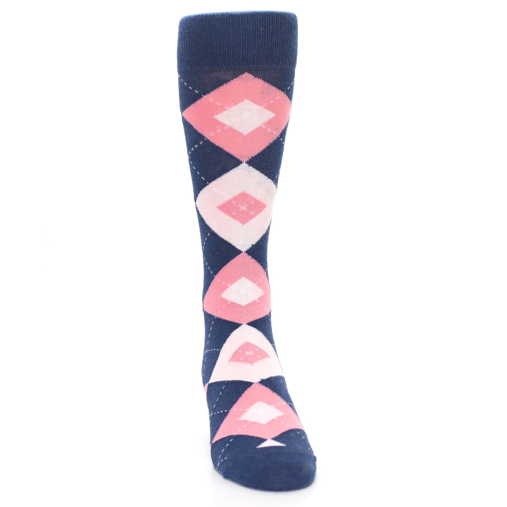 Flamingo Petal Pink Navy Argyle Wedding Groomsmen Men’s Dress Socks