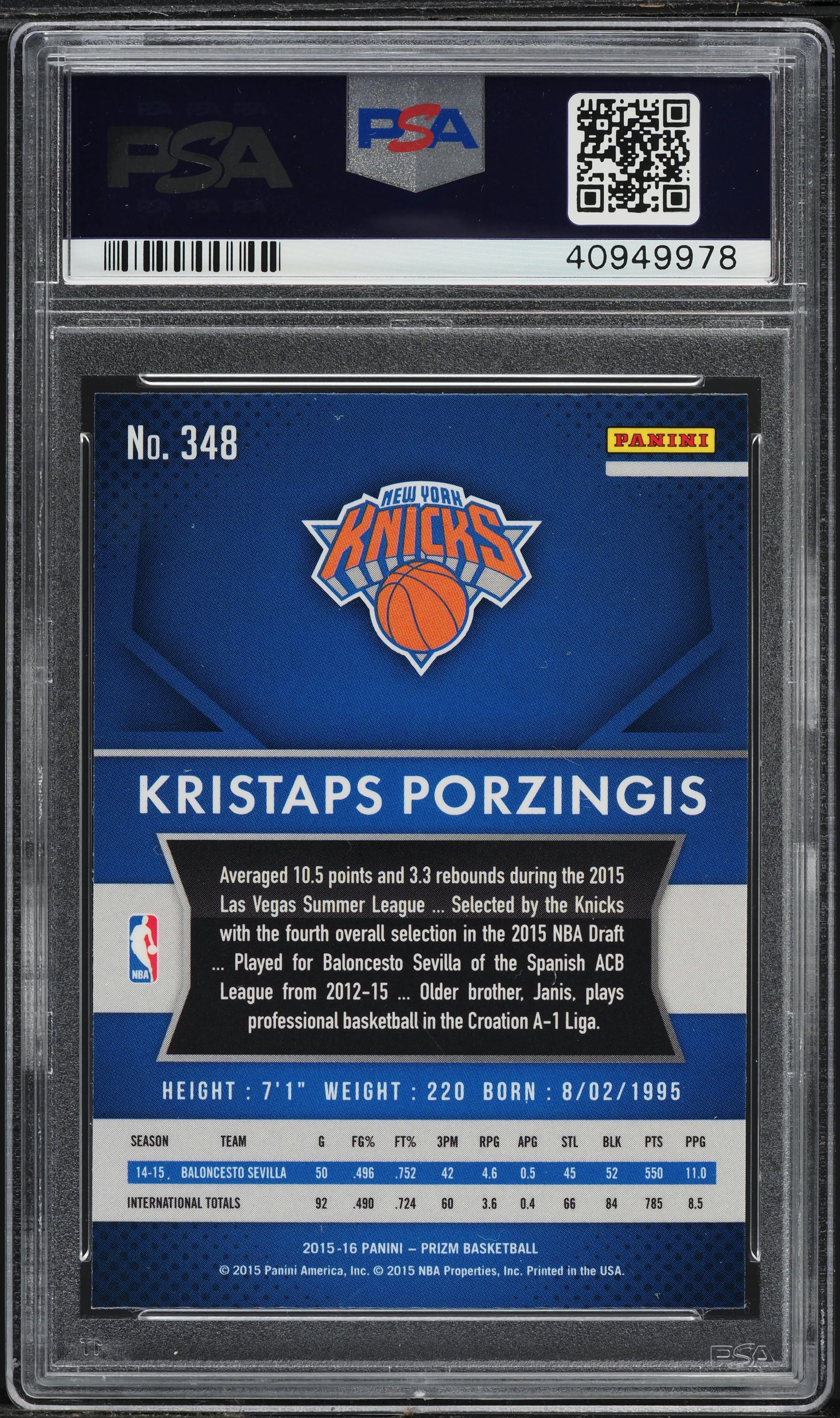 Graded 2015 Panini Prizm Kristaps Porzingis #348 Rookie RC Basketball Card PSA 10 Gem Mint