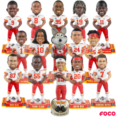 Order your Kansas City Chiefs Super Bowl LVII 57 Champions bobbleheads before it's too late. Multiple players are available. They are officially licensed by the Kansas City Chiefs and the NFL.